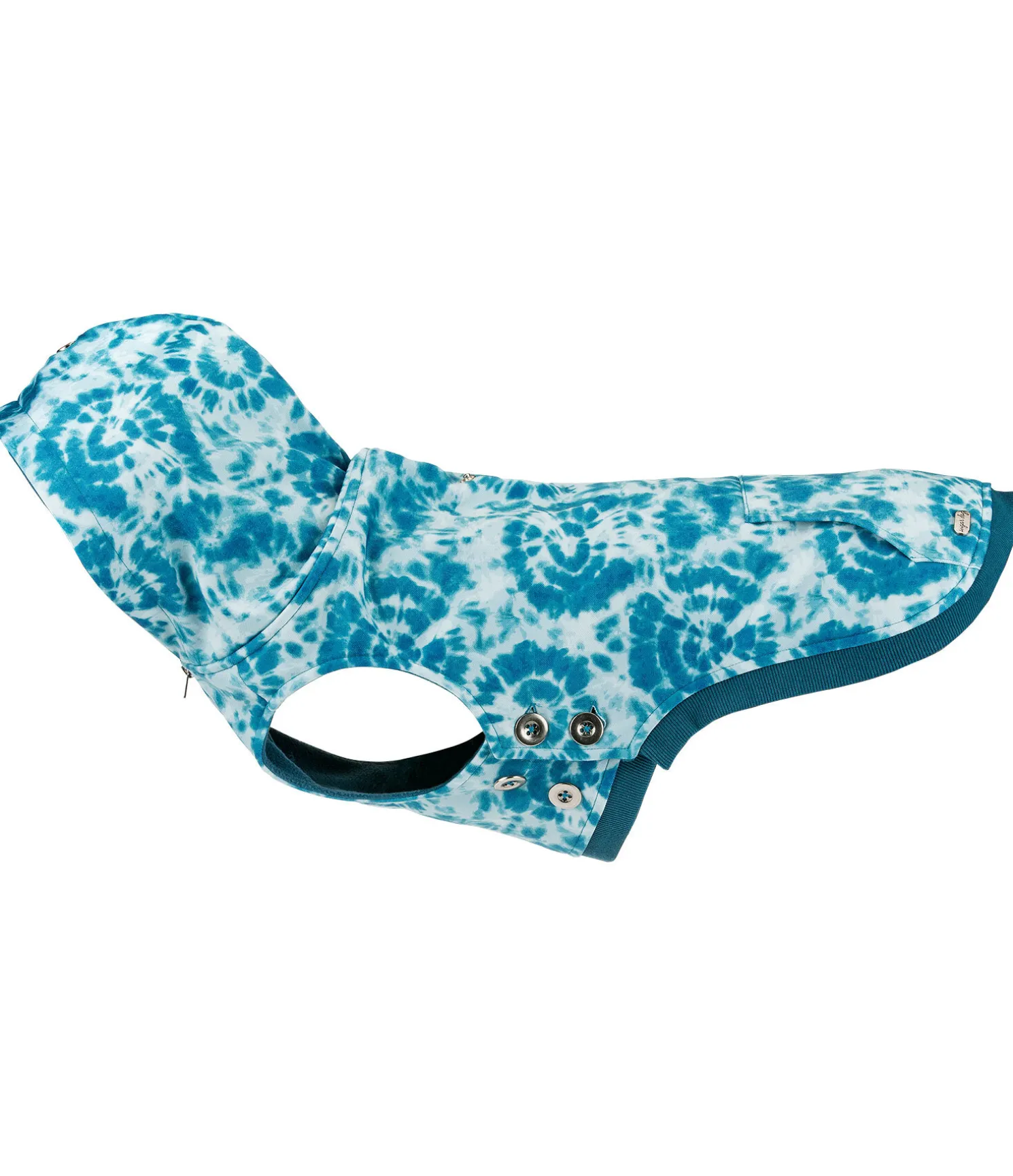 Sweat à capuche tendance à motif batik. Capuche avec système d’attache par bouton-pression dans le dos. Doublure chaude en polaire douce. Enfilage, retrait et ajustement faciles grâce à la double rangée de boutons sur la sangle ventrale et la fermeture à glissière au niveau du poitrail. Poche kangourou plaquée au dos pour compléter le look tendance. Ouverture pour le harnais. Pour enfiler le sweat, il suffit d’ouvrir les boutons latéraux au niveau de la sangle ventrale et si nécessaire la fermeture à glissière au niveau du poitrail et de faire passer la tête du chien par l’encolure. Fermer ensuite les 4 boutons. 100 % polyester.