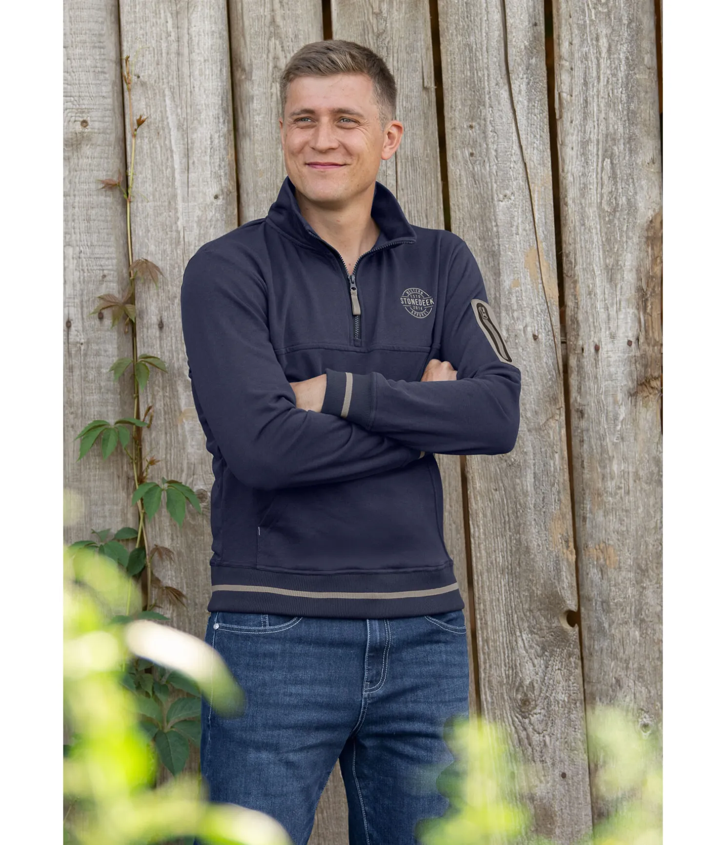 Sweat à col zippé de qualité supérieure pour homme. Respirant, avec poche plaquée zippée sur le bras. Logo de la marque sur la poitrine et poche kangourou à l’avant. Bordure côtelée et col montant avec fermeture à glissière. 100 % coton.