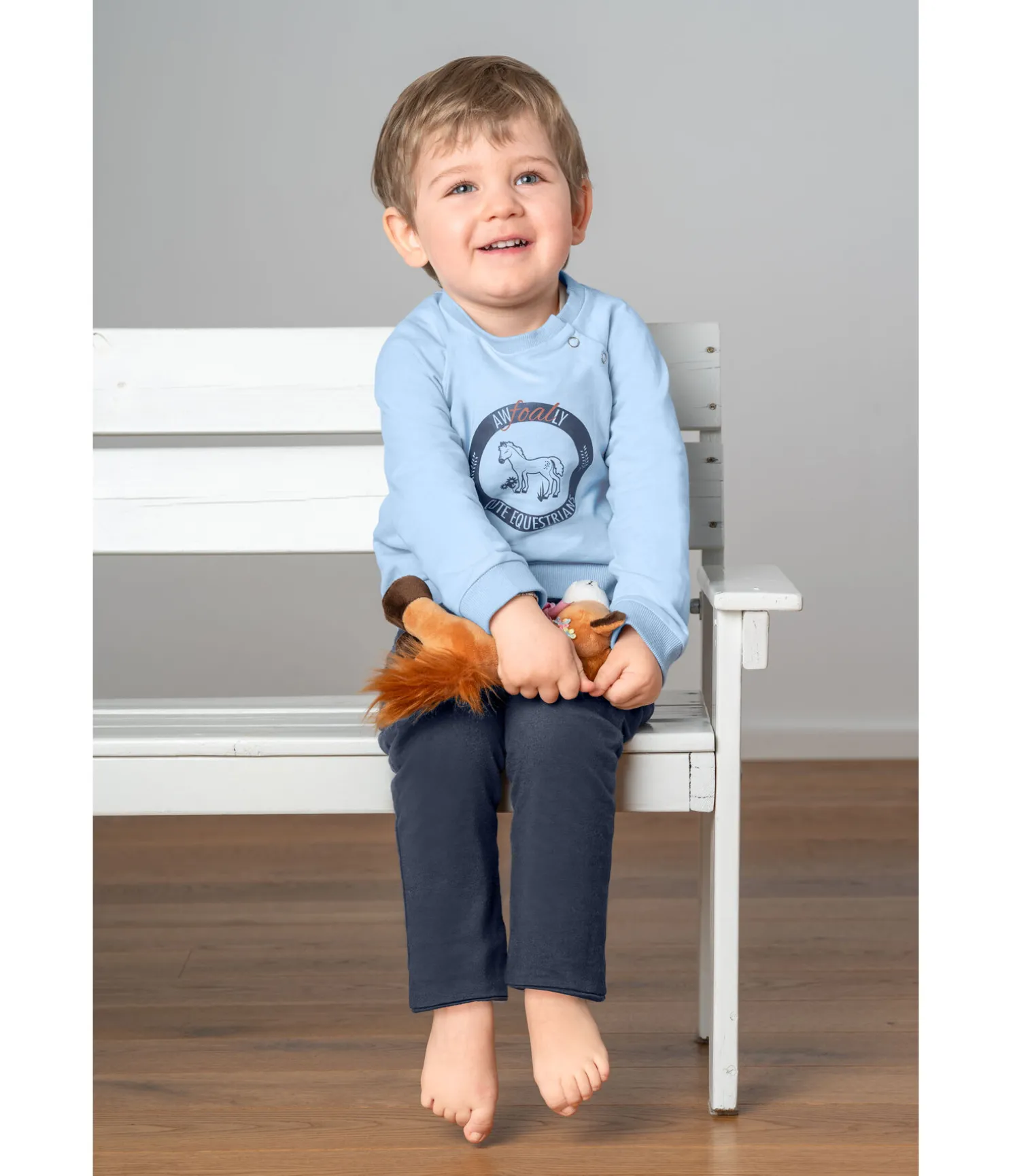 Adorable sweat doux. Boutons-pression au col pour un enfilage facile. Finition en maille côtelée fine en bas des manches, au col et à la taille. Modèle dans la couleur bleu glacier avec imprimé poulain à l’avant. Modèle dans la couleur rose-violet avec imprimé poulain et jument. 95 % coton, 5 % élasthanne. Taille 3 = 62 / 68 cm ; taille 9 = 74 / 80 cm ; taille 18 = 86 / 92 cm