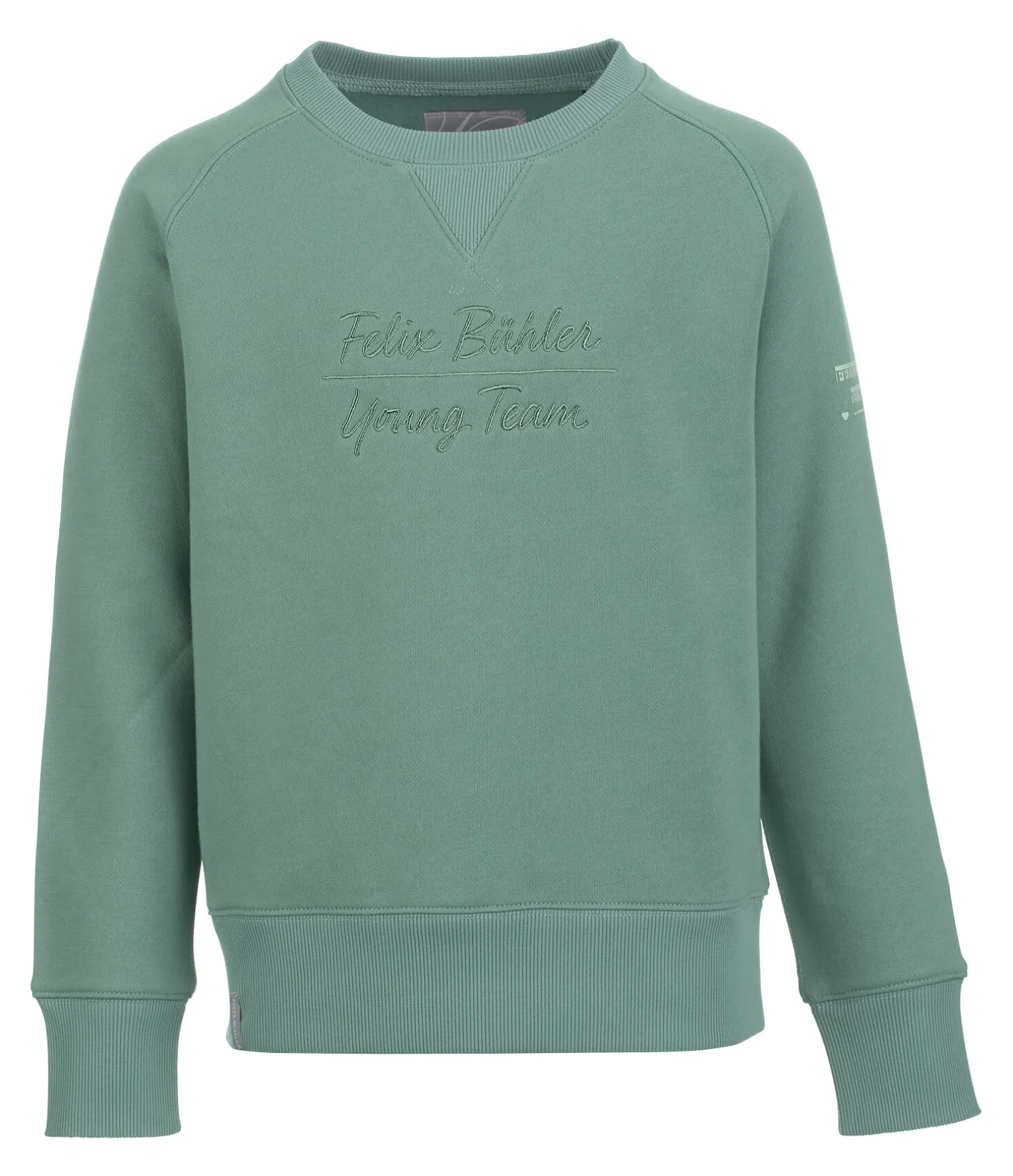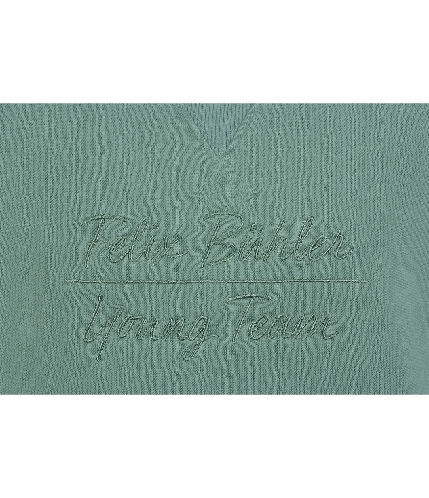 Sweat doux à col rond. Broderie « Felix Bühler Young Team » ton sur ton sur la poitrine et imprimé sur le bras. Finition douce en bord-côte douce sur le bas des manches, le col et l’ourlet. 65 % polyester, 35 % coton.