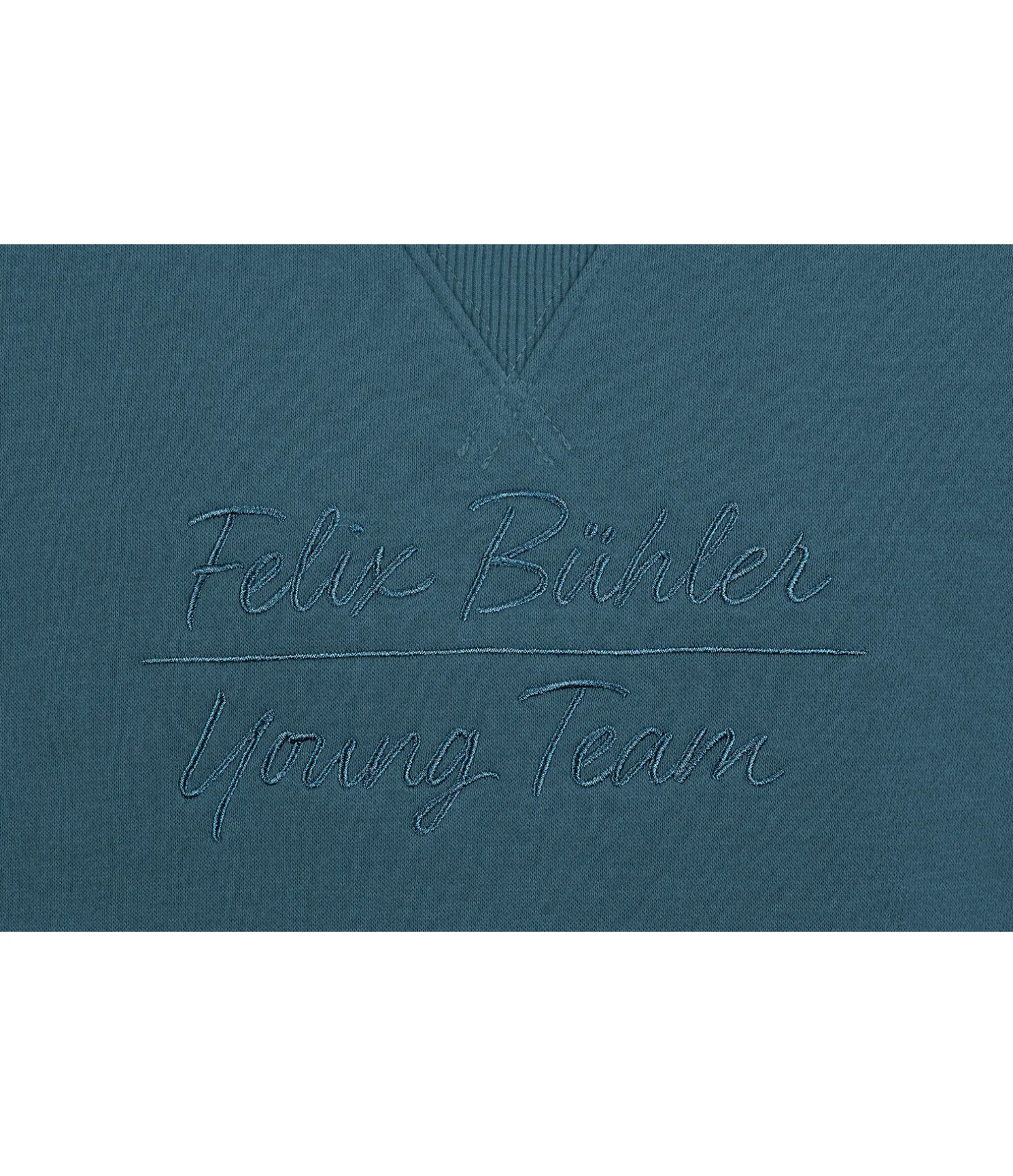 Sweat doux à col rond. Broderie « Felix Bühler Young Team » ton sur ton sur la poitrine et imprimé sur le bras. Finition douce en bord-côte douce sur le bas des manches, le col et l’ourlet. 65 % polyester, 35 % coton.
