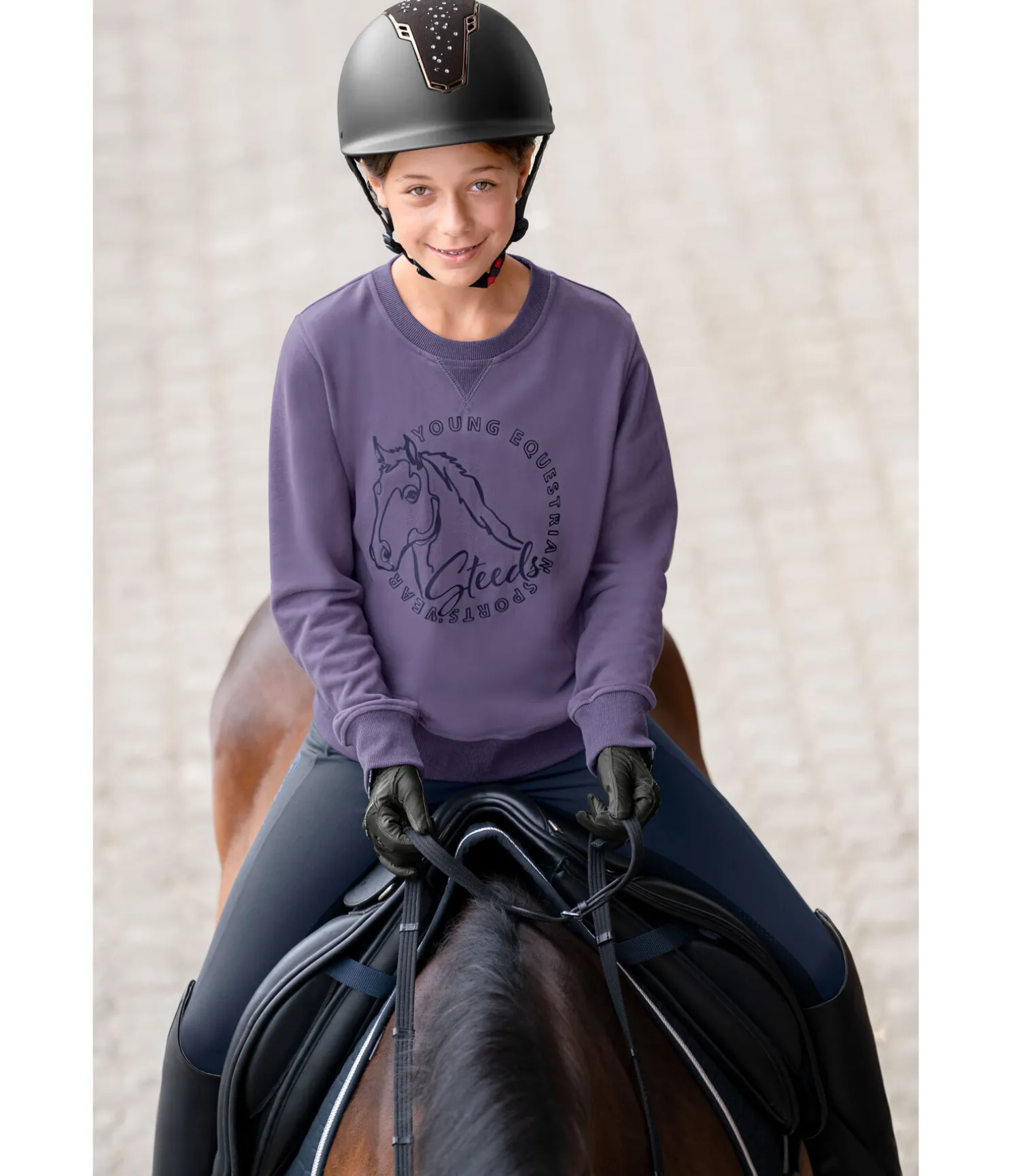 Sweat à col rond confortable. Joli imprimé cheval à l’avant. Finition en bord-côte sur le col, le bas de manches et l’ourlet. 65 % coton, 35 % polyester.