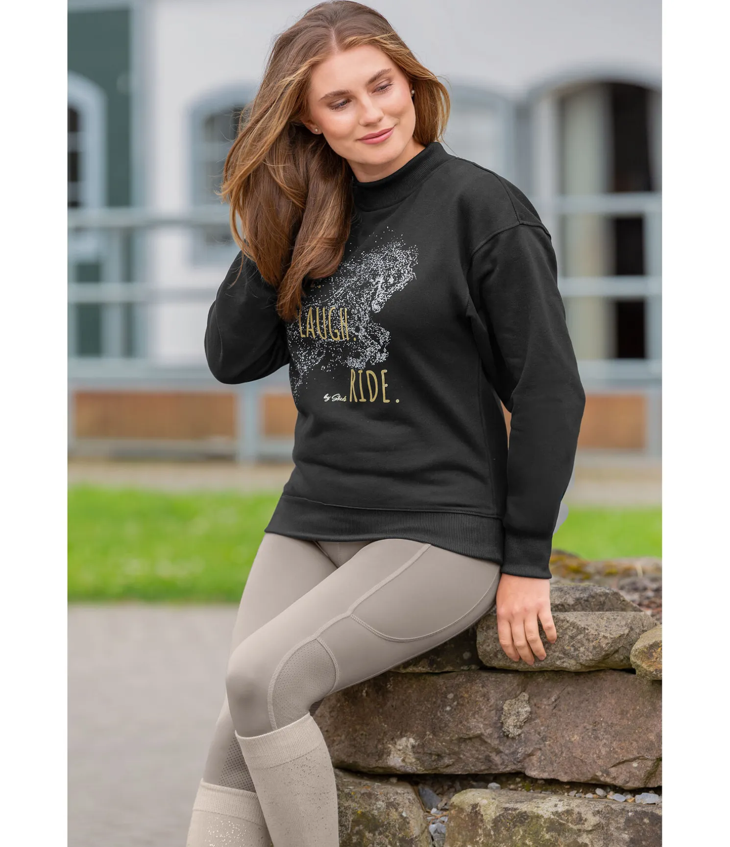 Sweat doux à col rond. Grand motif équestre imprimé sur la poitrine. Finition bord-côte à la taille, au col et sur le bas des manches. 100 % coton.