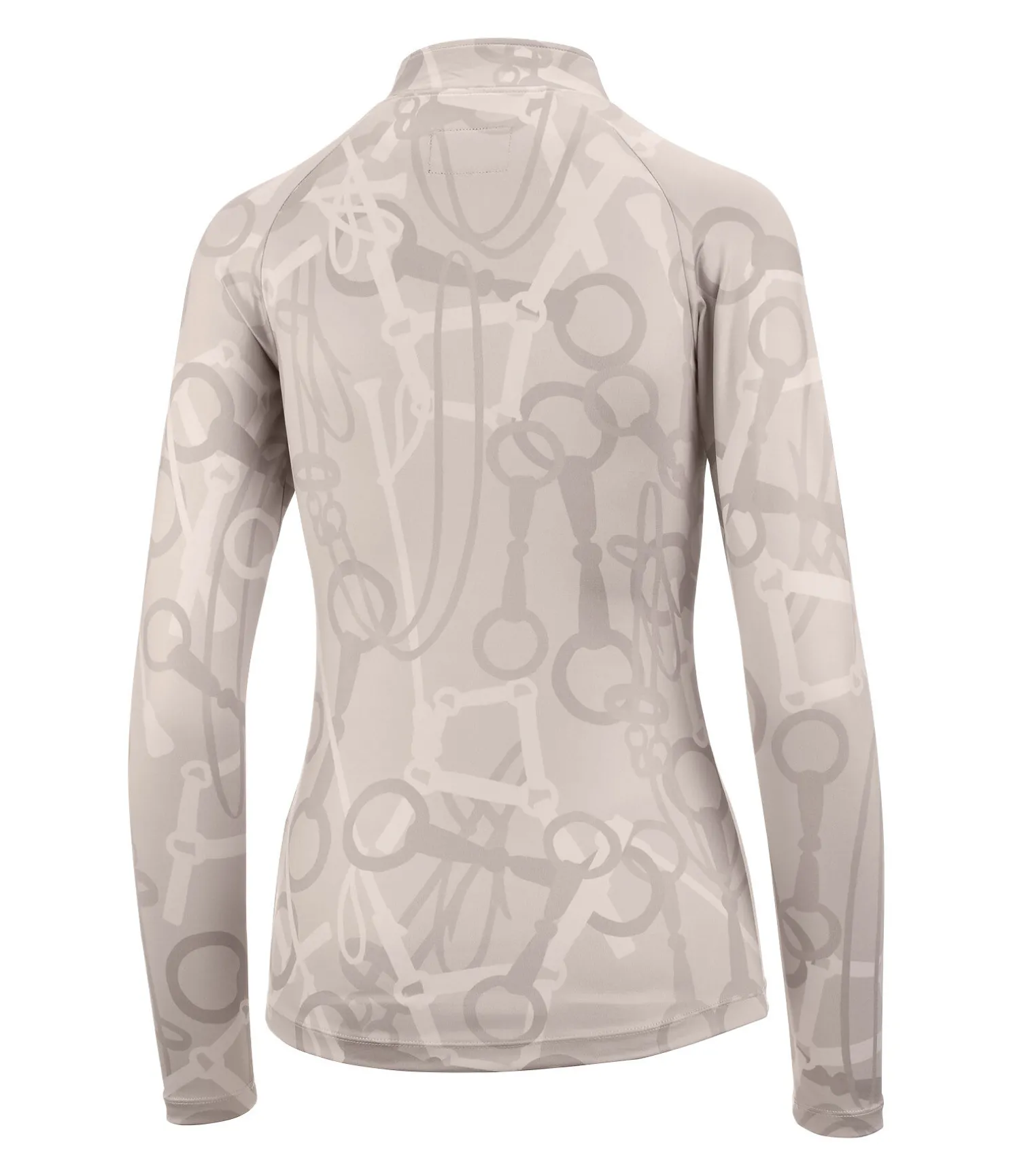 T-shirt fonctionnel chic, doux et extensible, à manches longues. Imprimé inspiration équestre all-over. Col montant zippé avec protège-menton. Matière respirante à séchage rapide. 88 % polyester, 12 % élasthanne.