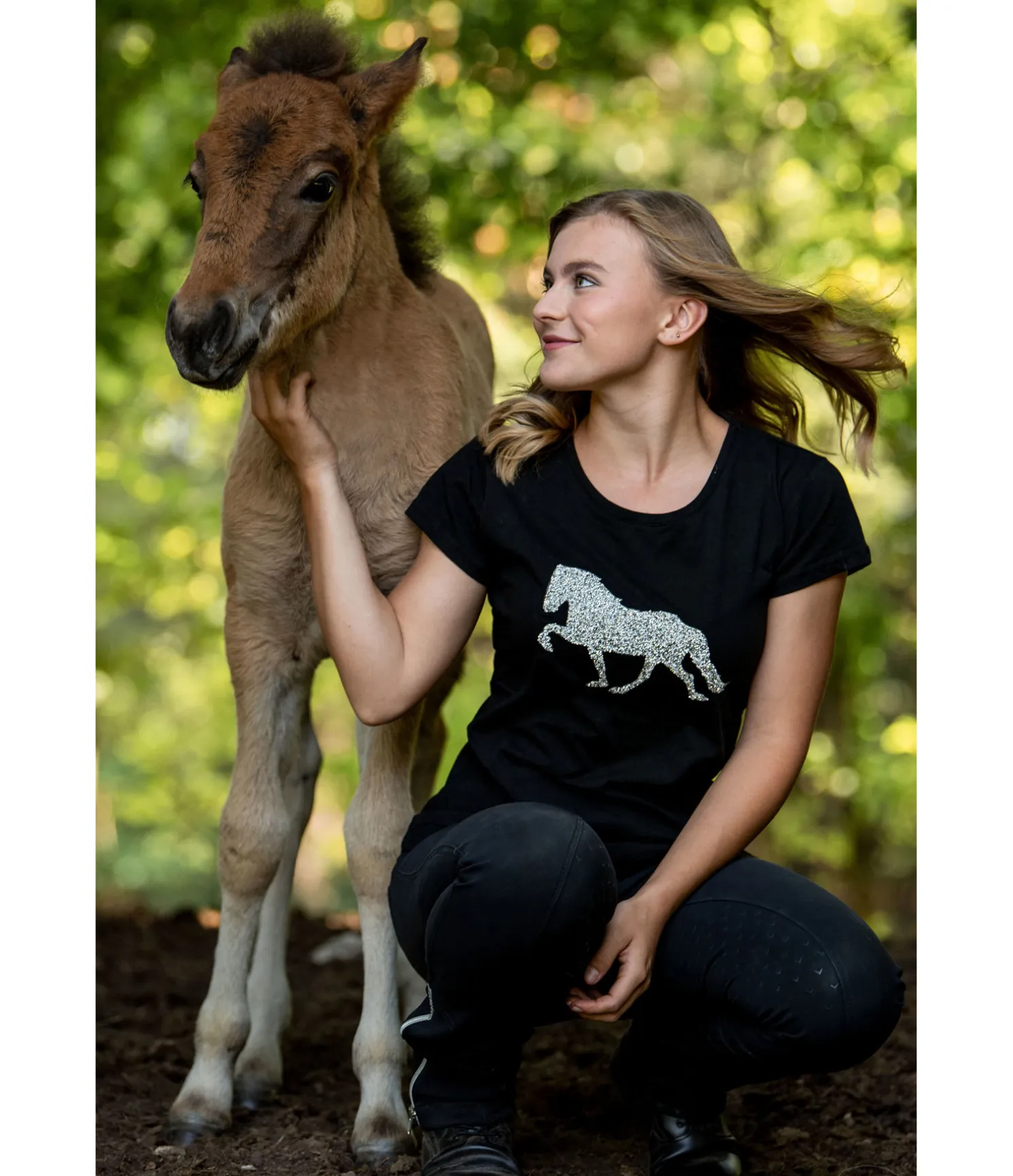 T-shirt doux avec motif islandais en strass scintillants sur la poitrine. 100 % coton.