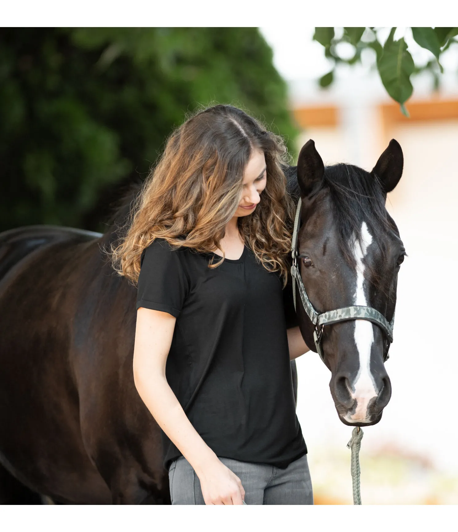 T-shirt à col en V, coupe ample, matière respirante. 95 % viscose, 5 % élasthanne.