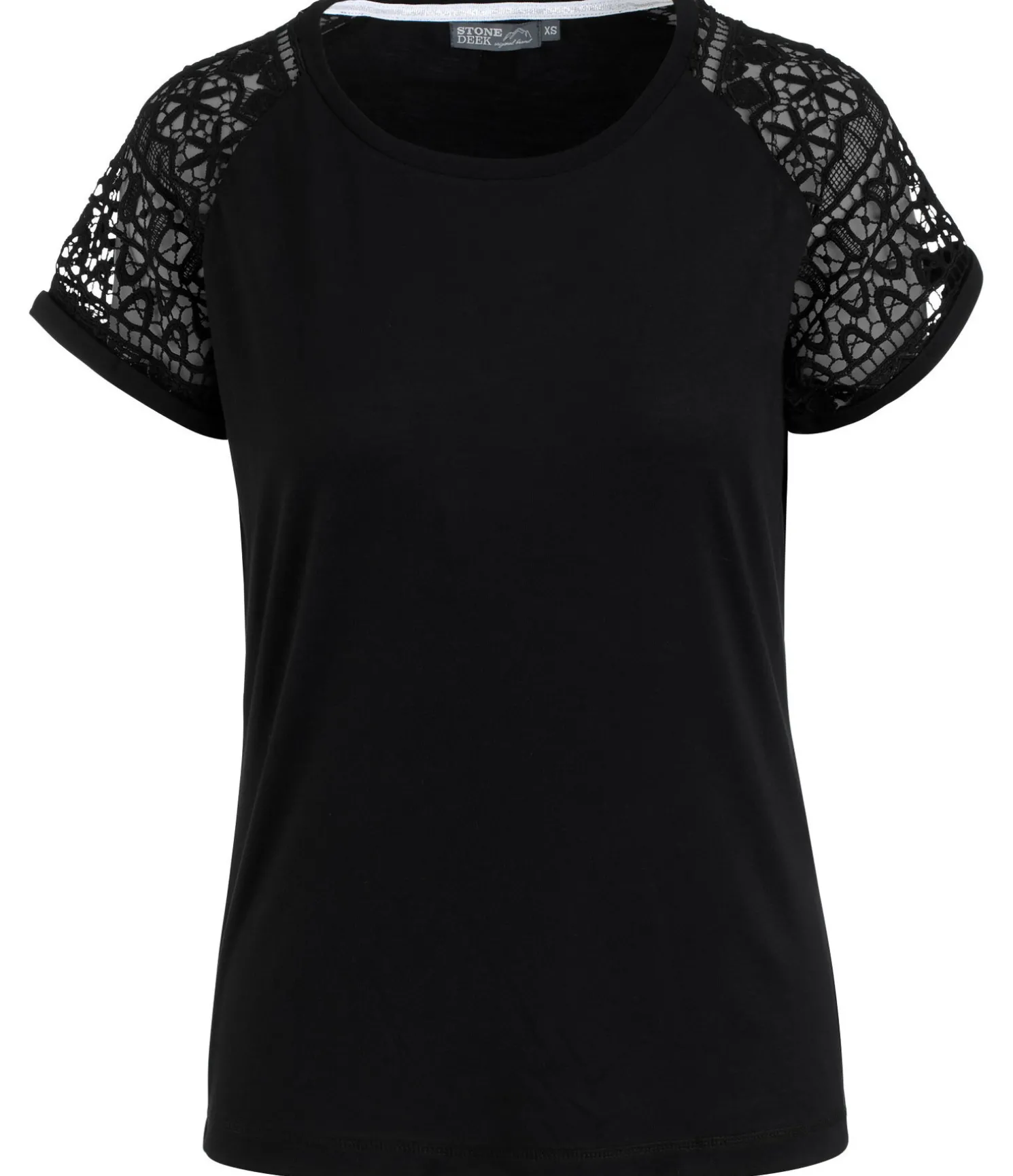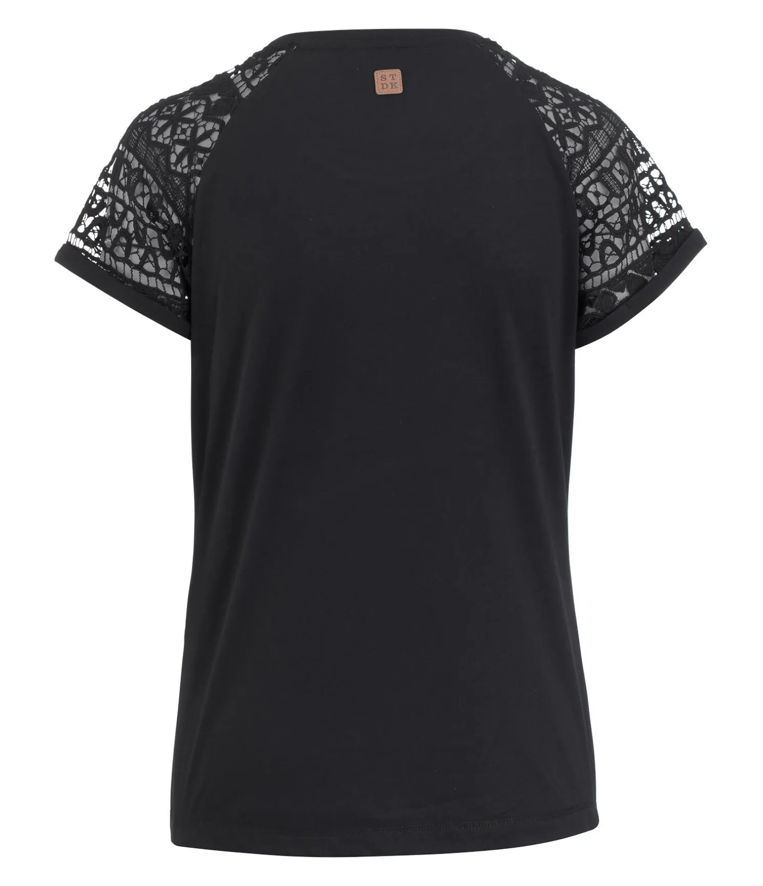 T-shirt à col rond. Coupe ample. Manches en dentelle. Matière respirante. 62 % polyester, 33 % viscose, 5 % élasthanne.