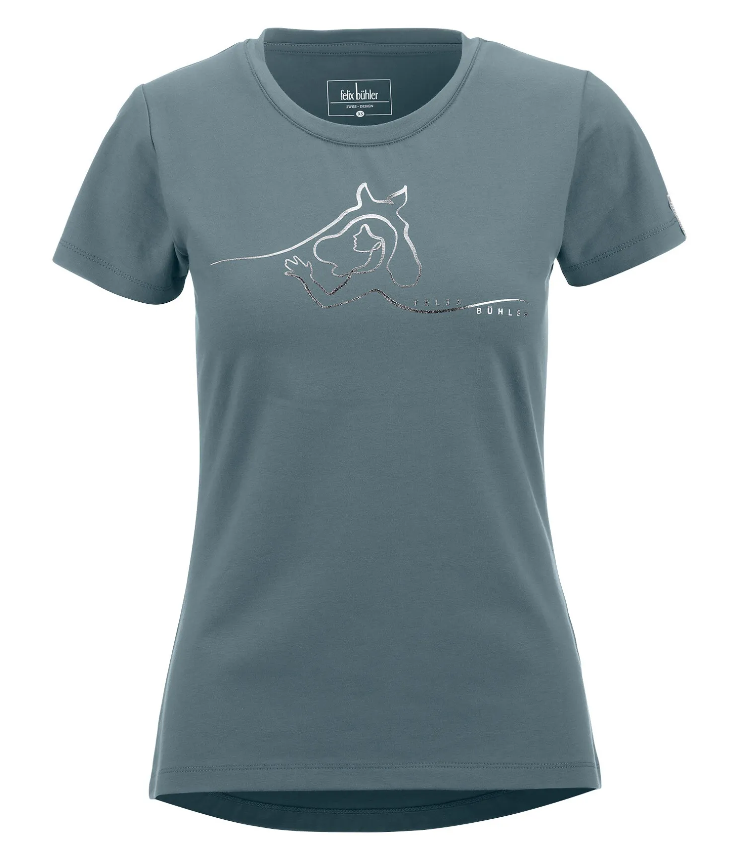 T-shirt à col rond. Coupe décontractée. Jersey de coton confortable. Joli motif équestre sur la poitrine. 95 % coton, 5 % élasthanne.