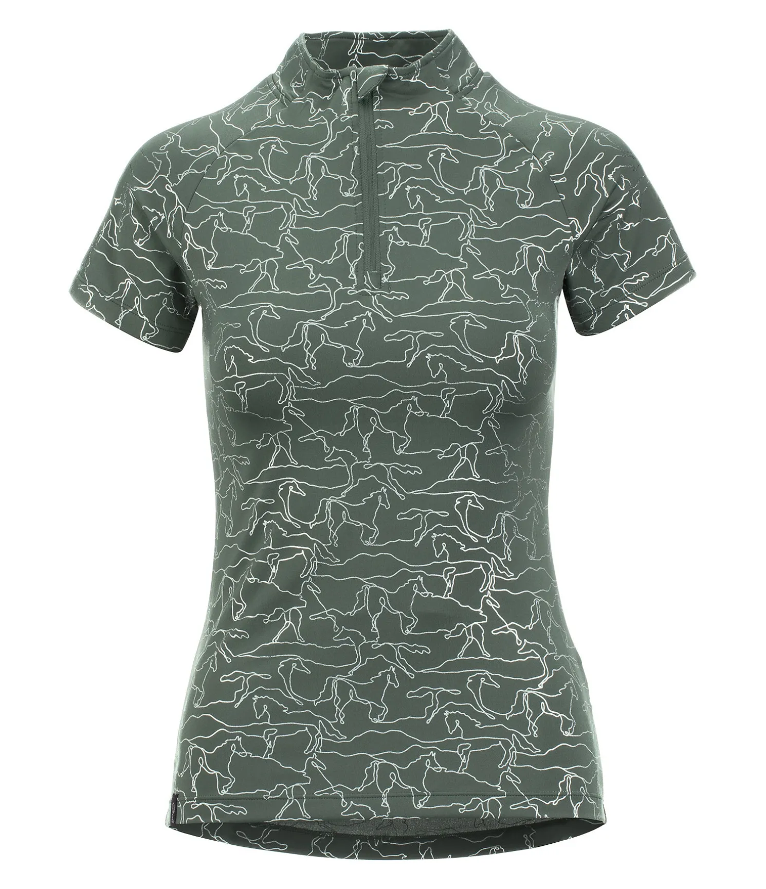 T-shirt technique. Manches raglan. Col montant zippé avec protège-menton. Imprimé argenté all-over. Matière respirante à séchage rapide. 88 % polyester, 12 % élasthanne.