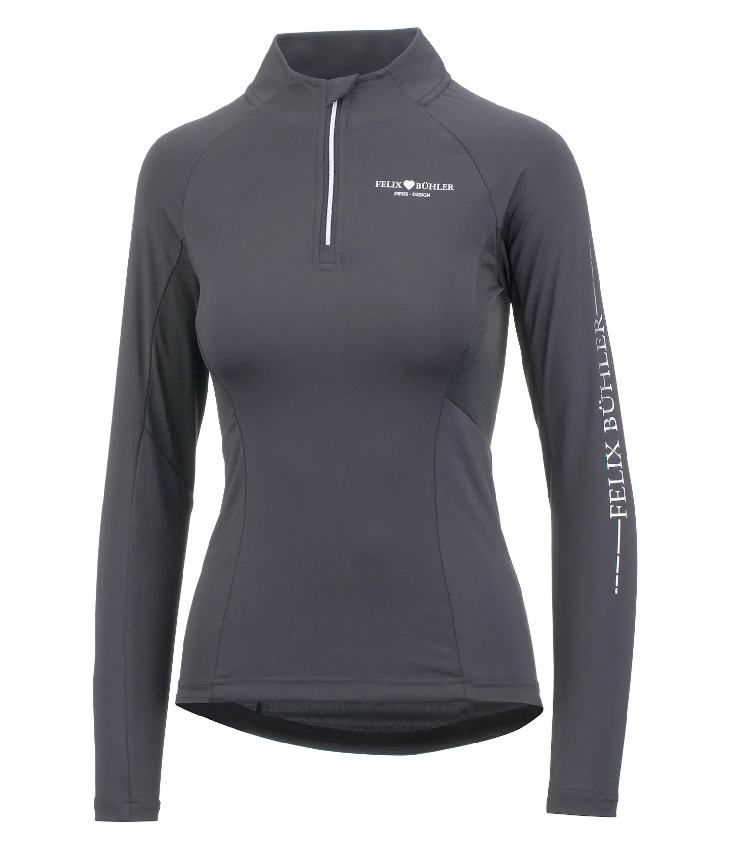 T-shirt technique et sportswear à manches longues avec inserts en mesh sous les bras. Logo sur la manche et la poitrine. Col montant zippé avec protège-menton. Matière respirante à séchage rapide. 88 % polyester, 12 % élasthanne.