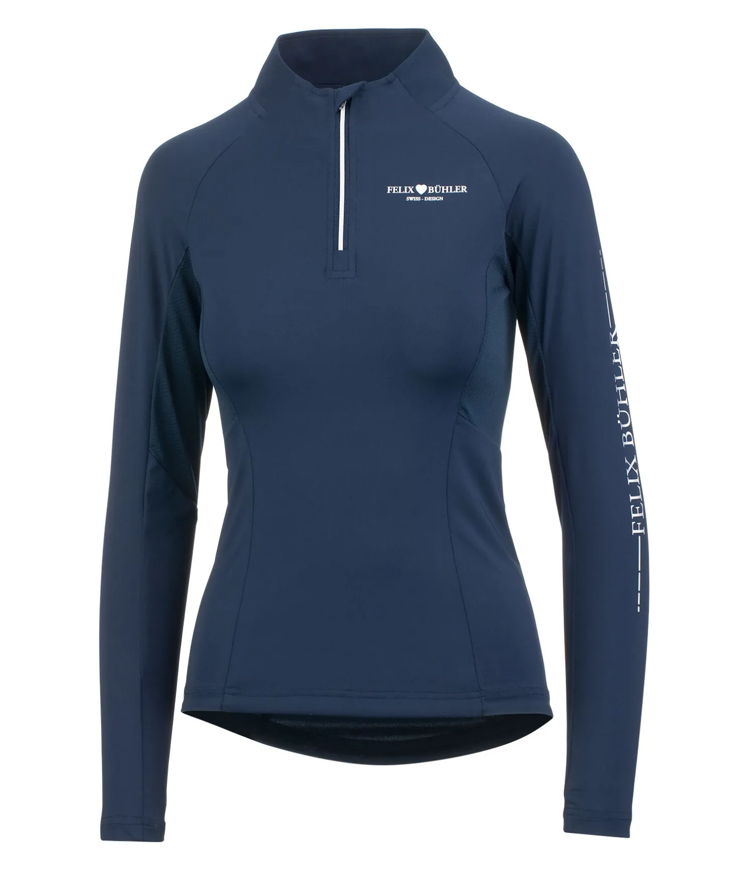 T-shirt technique et sportswear à manches longues avec inserts en mesh sous les bras. Logo sur la manche et la poitrine. Col montant zippé avec protège-menton. Matière respirante à séchage rapide. 88 % polyester, 12 % élasthanne.