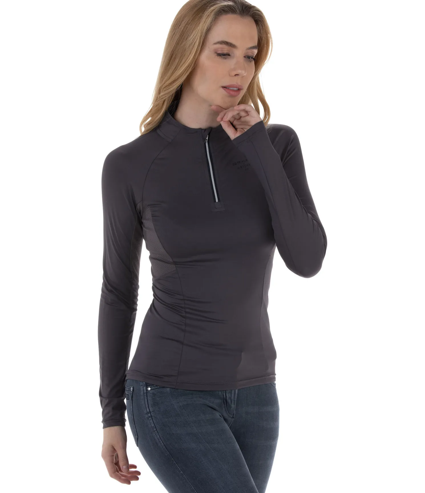 T-shirt à manches longues extensible et doux. Col montant zippé. Empiècements en mesh pour une respirabilité optimale. Manches raglan. Matière à séchage rapide. 88 % polyester, 12 % élasthanne.
