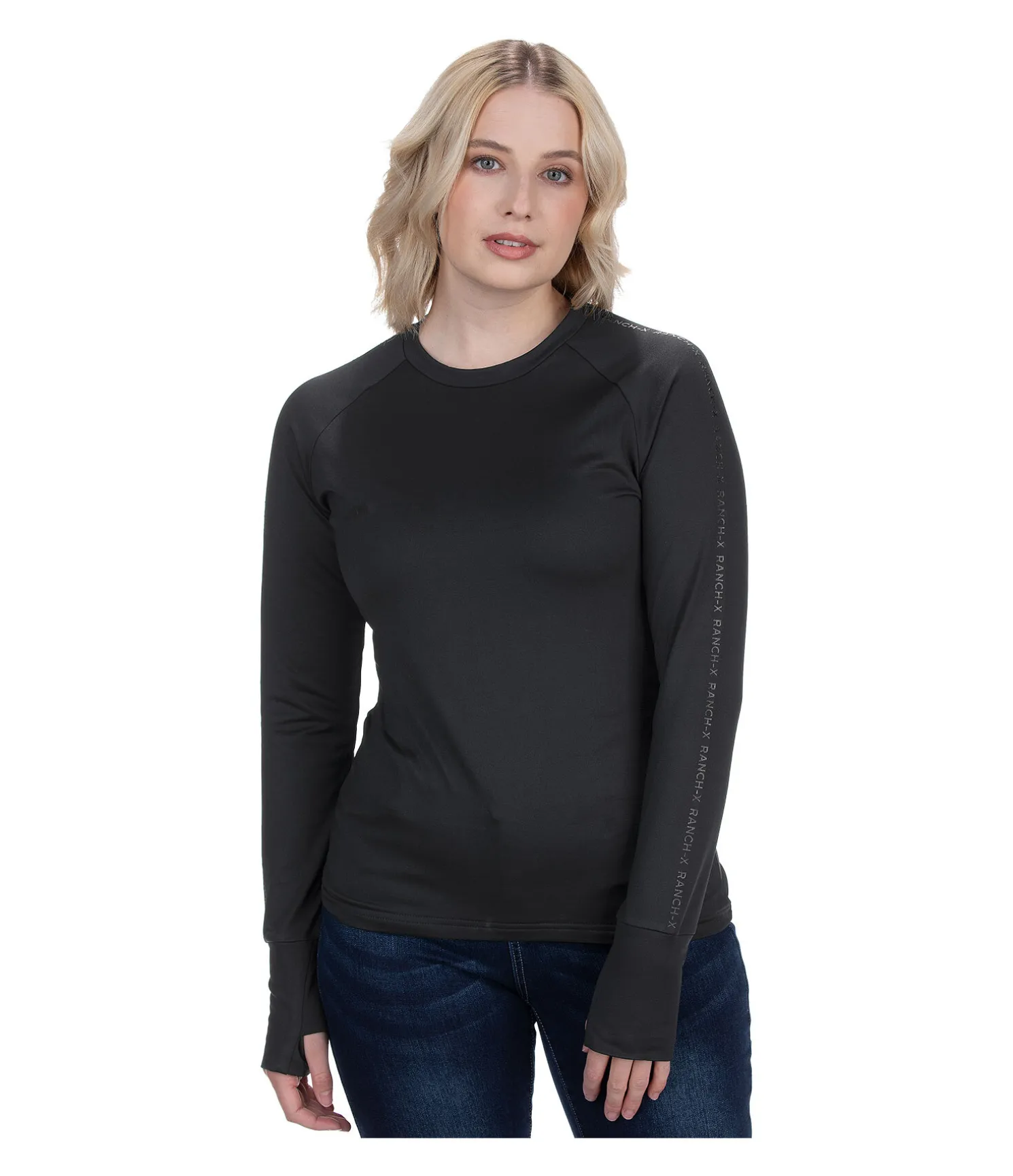 T-shirt technique chaud et respirant à col rond. Manches longues avec passe-pouce. Imprimé logo discret dans le dos et sur les manches. 92 % polyester, 8 % élasthanne.