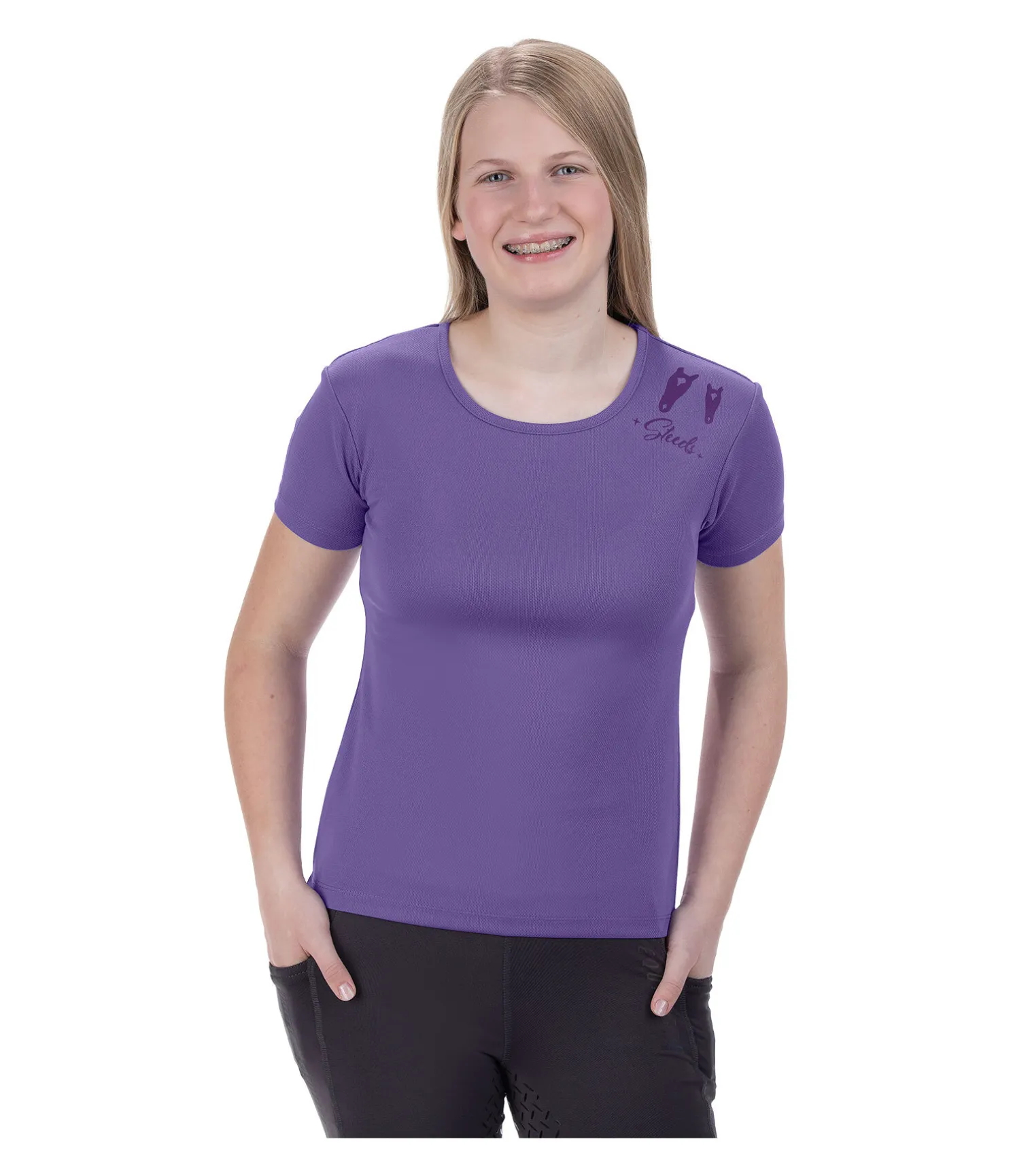 T-shirt technique à col rond. Matière respirante à séchage rapide. Logo STEEDS et motif cheval sur l’épaule. 100 % polyester.