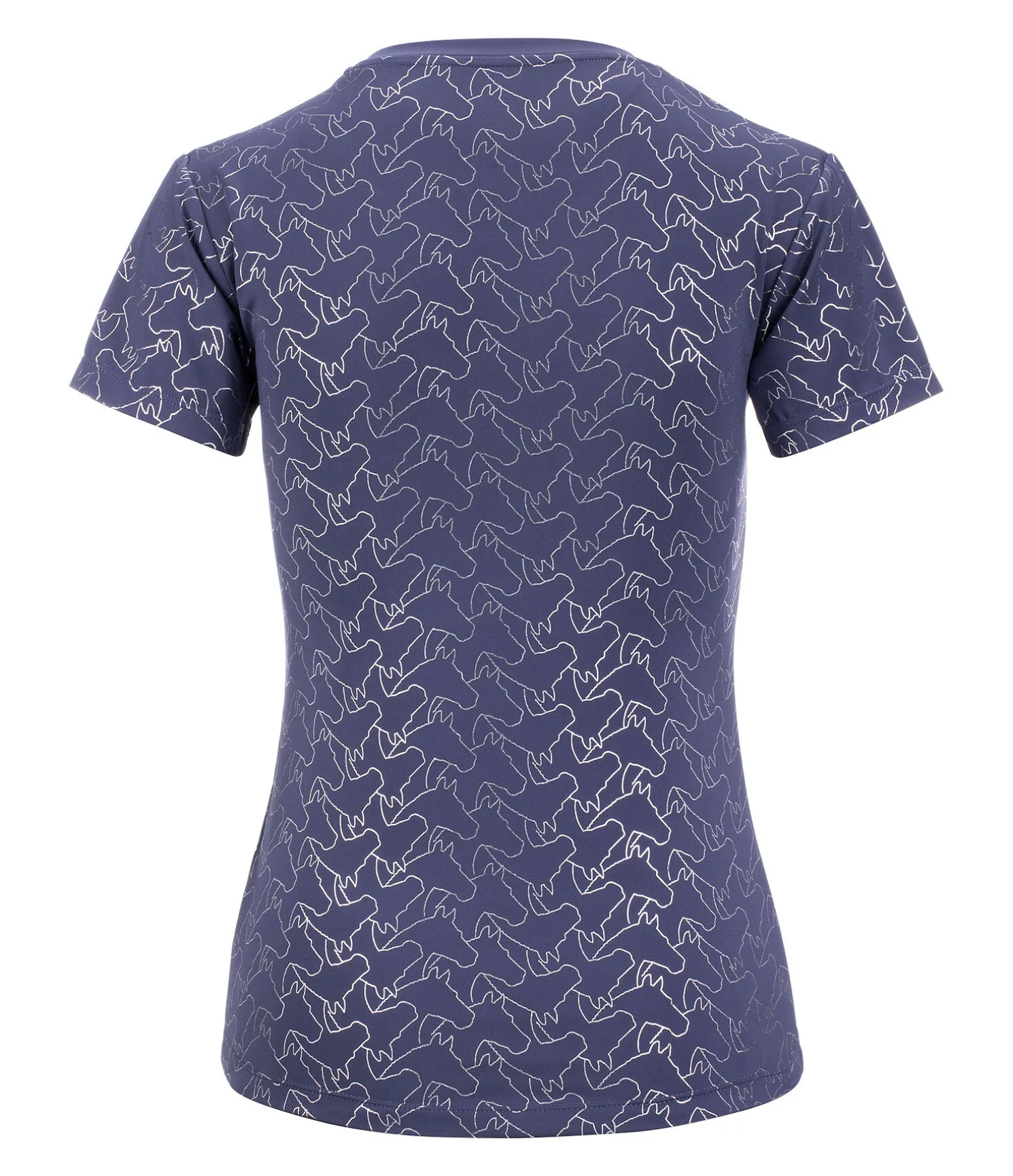 T-shirt chic à col rond avec imprimé all-over métallisé motif tête de cheval. Tissu technique respirant et à séchage rapide. 88 % polyester, 12 % élasthanne.