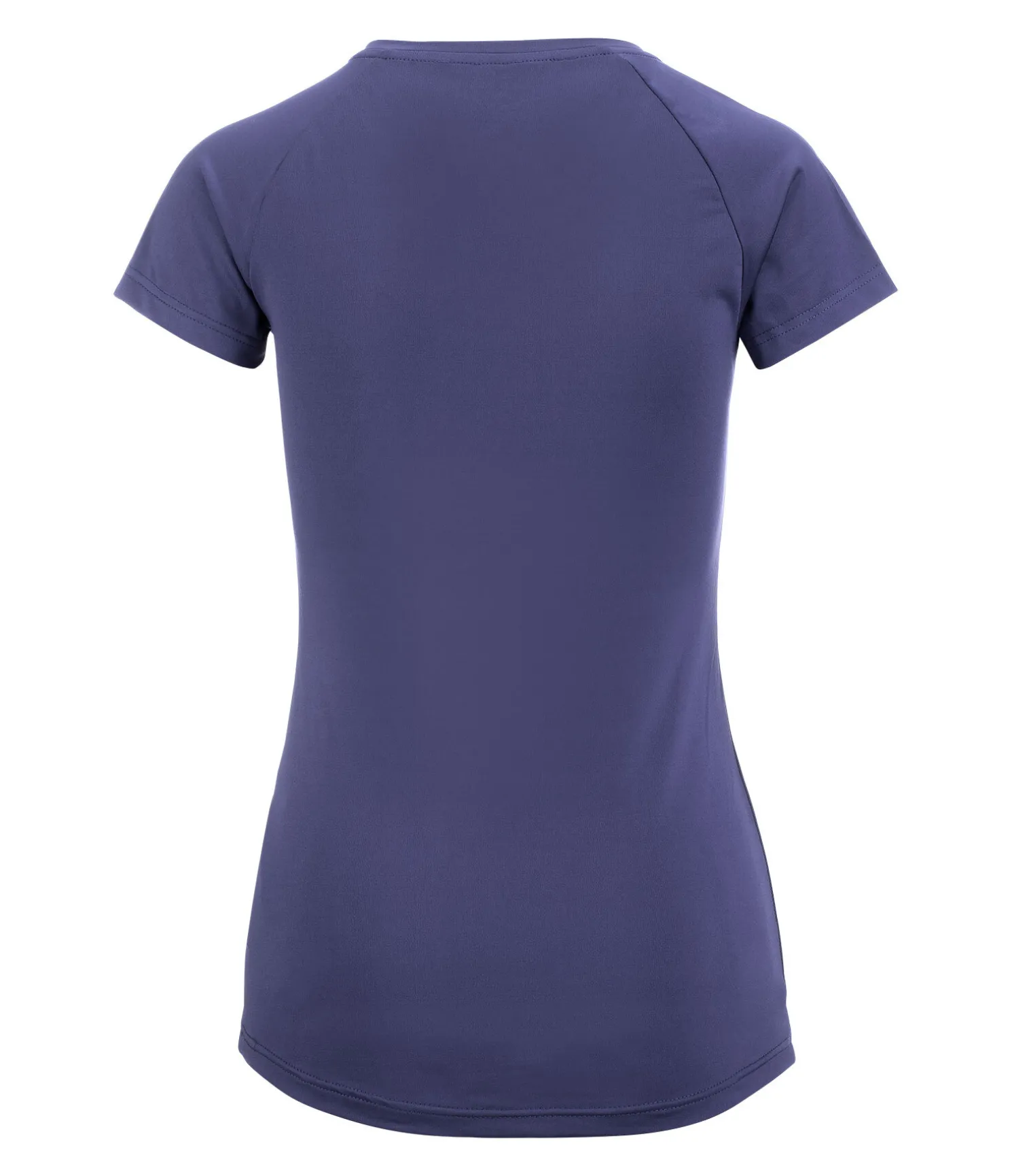 T-shirt col en V à manches courtes. Doux et extensible. Matière respirante à séchage rapide. Imprimé argenté sur la poitrine. 88 % polyester, 12 % élasthanne.