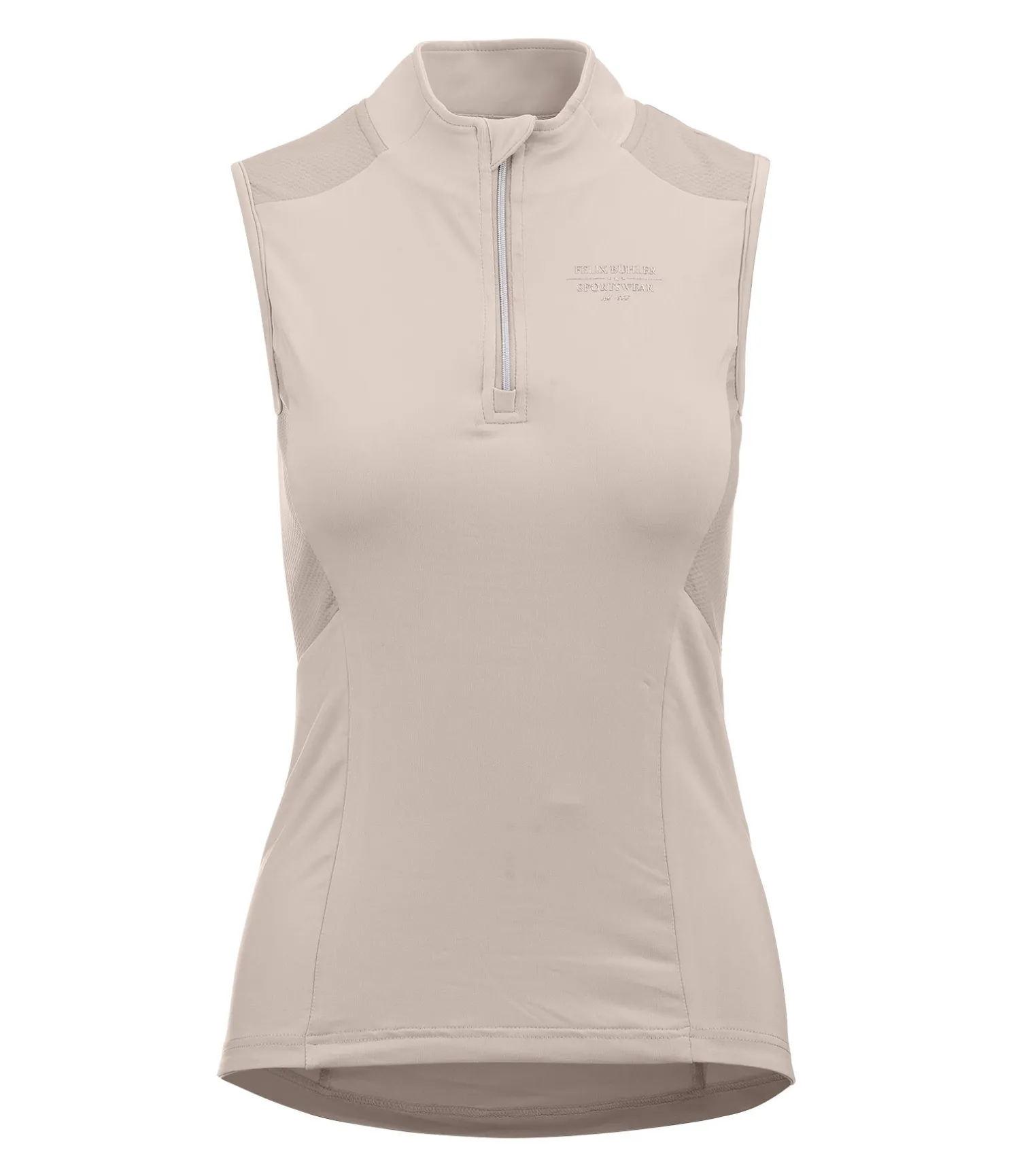 Essentiel pour l’été ! T-shirt technique sans manches avec col montant et fermeture à glissière scintillante avec protège-menton. Respirabilité maximale grâce aux empiècements en mesh sur les côtés. Tissu technique respirant et à séchage rapide. 88 % polyester, 12 % élasthanne.