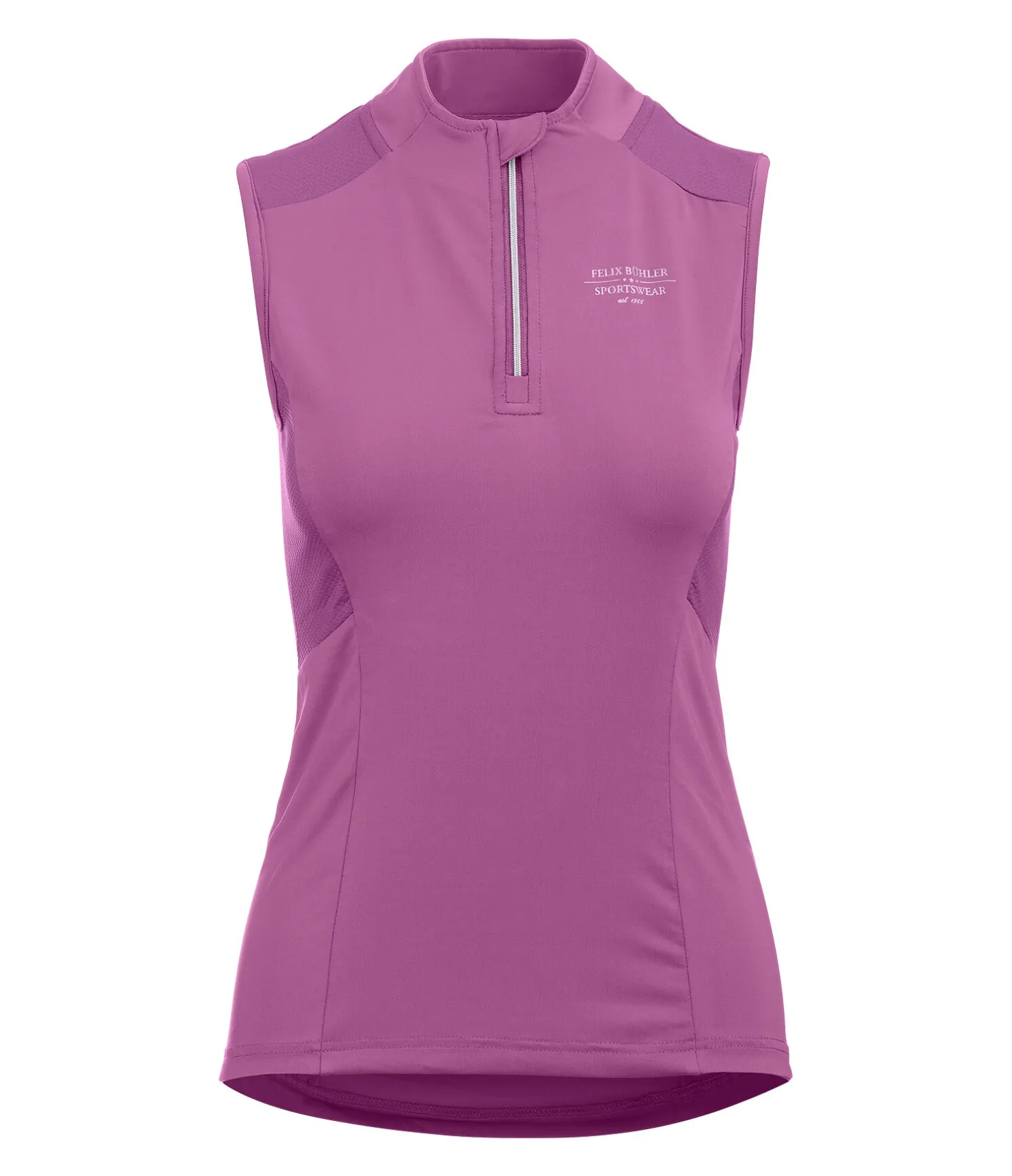 Essentiel pour l’été ! T-shirt technique sans manches avec col montant et fermeture à glissière scintillante avec protège-menton. Respirabilité maximale grâce aux empiècements en mesh sur les côtés. Tissu technique respirant et à séchage rapide. 88 % polyester, 12 % élasthanne.