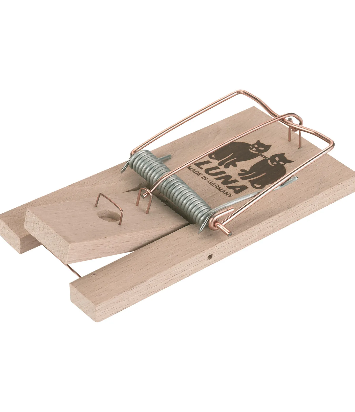 Tapette à rat classique pour une utilisation en intérieur ou en bâtiment couvert. Mécanisme à bascule en bois pour déclencher le piège. Déclencheur en hêtre certifié PEFCT, barre de frappe, crochet, ressort et clips de maintien en fil d’acier cuivré. Petit arc pour protéger l’appât. L’unité.