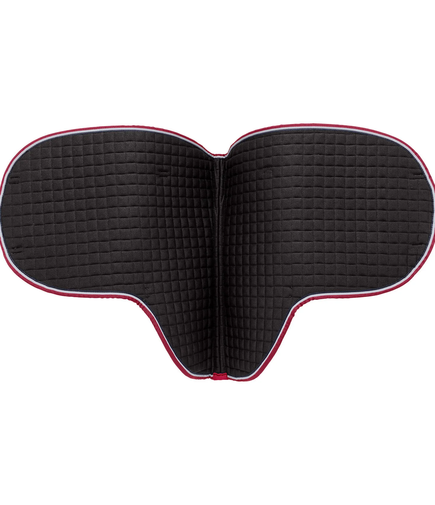 Tapis de selle classique et respirant, ce qui permet de moins couvrir la robe du cheval tout en assurant une protection optimale. Plaque métallique discrète avec logo gravé et bordure rayée de couleur contrastante. Passants de sangle et de contre-sanglons avec patte auto-agrippante. Dessous en Air Mesh respirant et absorbant l’humidité. Dessus 100 % coton, dessous et rembourrage 100 % polyester.