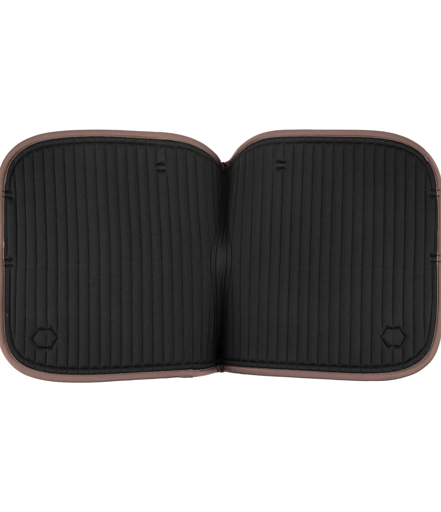 Tapis de selle élégant et sportif avec bande scintillante de couleur assortie et logo ton sur ton. Insert en mesh particulièrement respirant le long du dos pour une aération optimale. Dessus en matière lisse, souple et anti-salissures. Surpiqûre horizontale sportive. Passants de sangle et de contre-sanglons avec pattes auto-agrippantes pratiques. Dessous en Air mesh respirant et absorbant l’humidité. 100 % polyester.