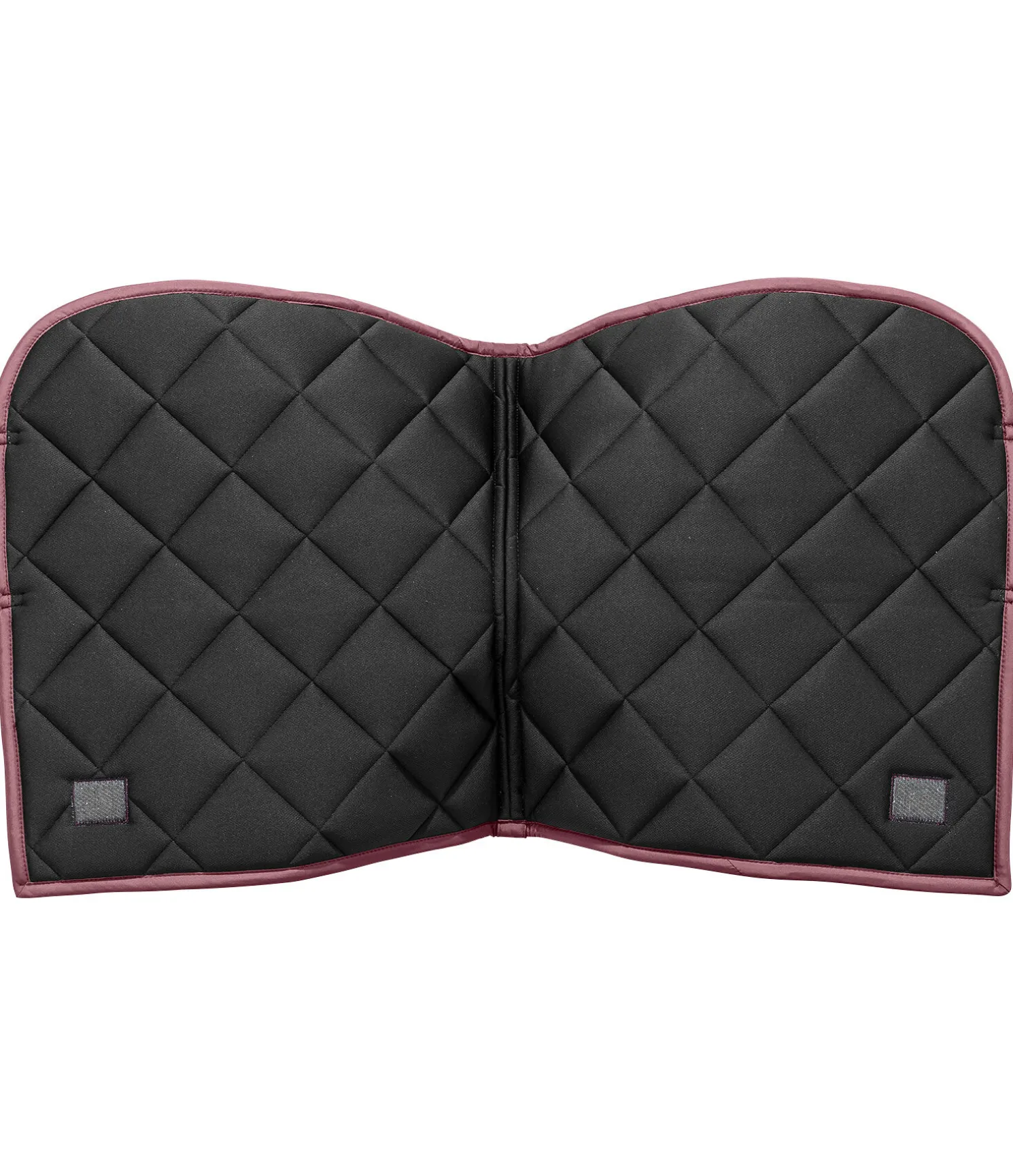 Élégant tapis de selle de forme carrée avec un soupçon de paillettes sur toute la matière supérieure et cordon décoratif scintillant. Logo de couleur assortie. Passants de contre-sanglons amovibles et passants de sangle avec pattes auto-agrippantes pratiques. Dessous en Air mesh respirant et absorbant l’humidité.