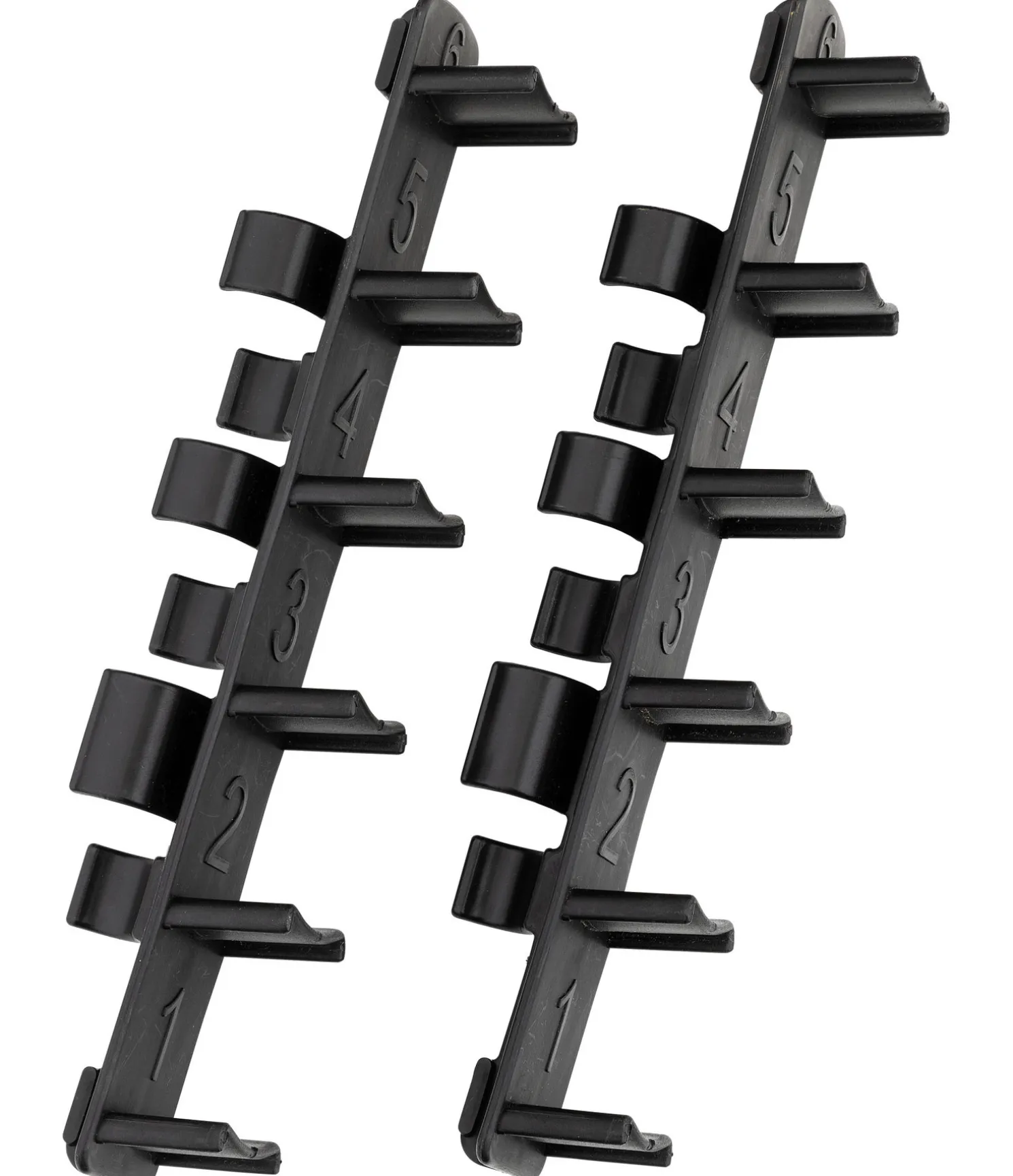 Support de barres à clipser avec 6 taquets pour obstacles d’agility. Facile à clipser sur les barres pour être réglé en hauteur. Longueur totale 28 cm. Vendu par 2.