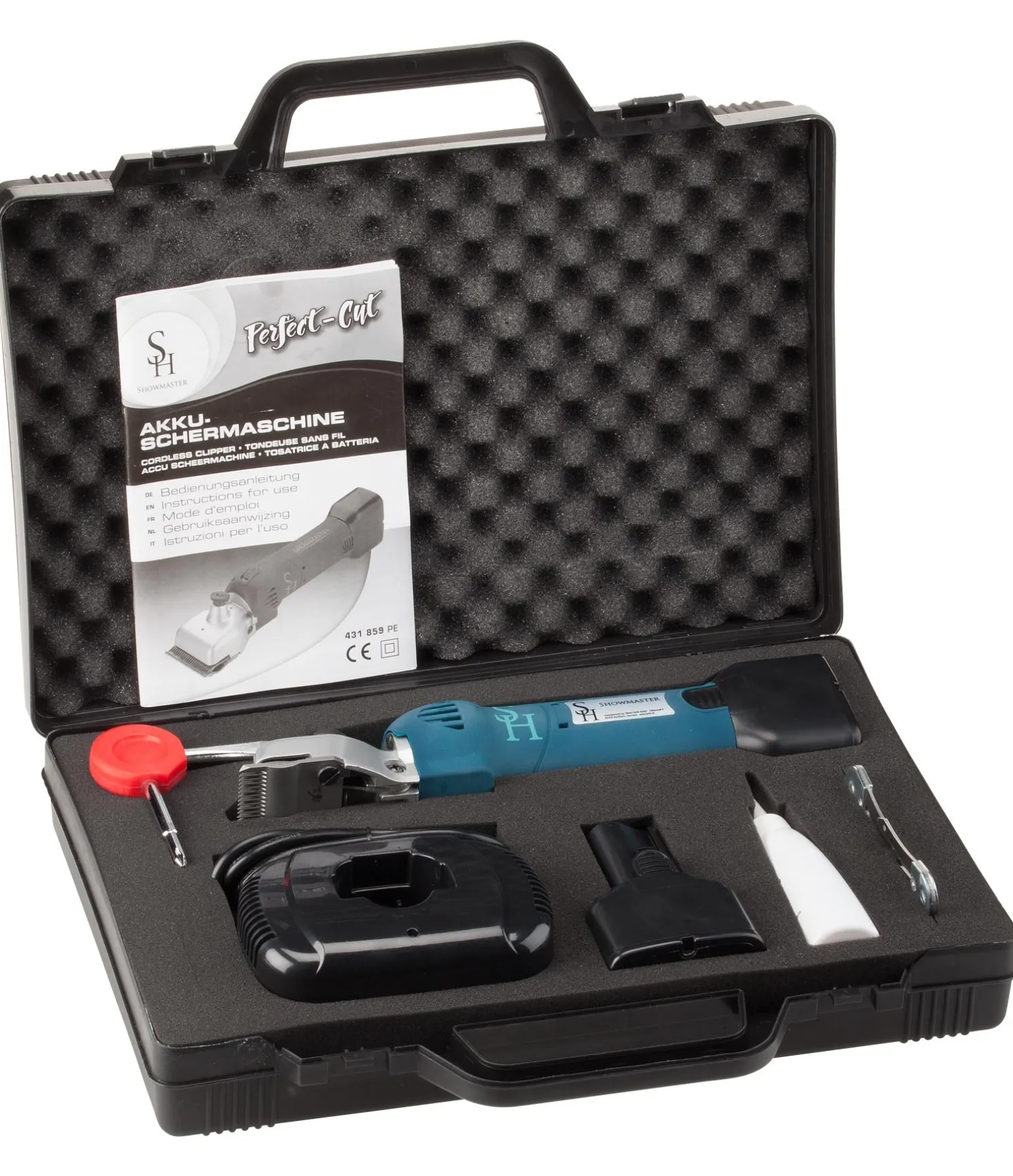 Livrée dans un coffret solide comprenant : tondeuse avec peignes et batterie, batterie de rechange, chargeur de batterie, tournevis et huile spéciale pour tondeuse.