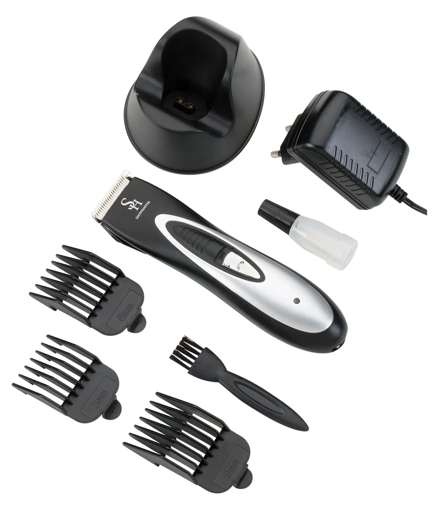 Petite tondeuse qui fonctionne sur batterie, idéale pour la tête et les finitions. Avec tête de rasage de largeur 32 mm. Très silencieuse et facile à prendre en main. 3 sabots amovibles pour des tontes de 3, 6 et 9 mm. Support de charge pratique