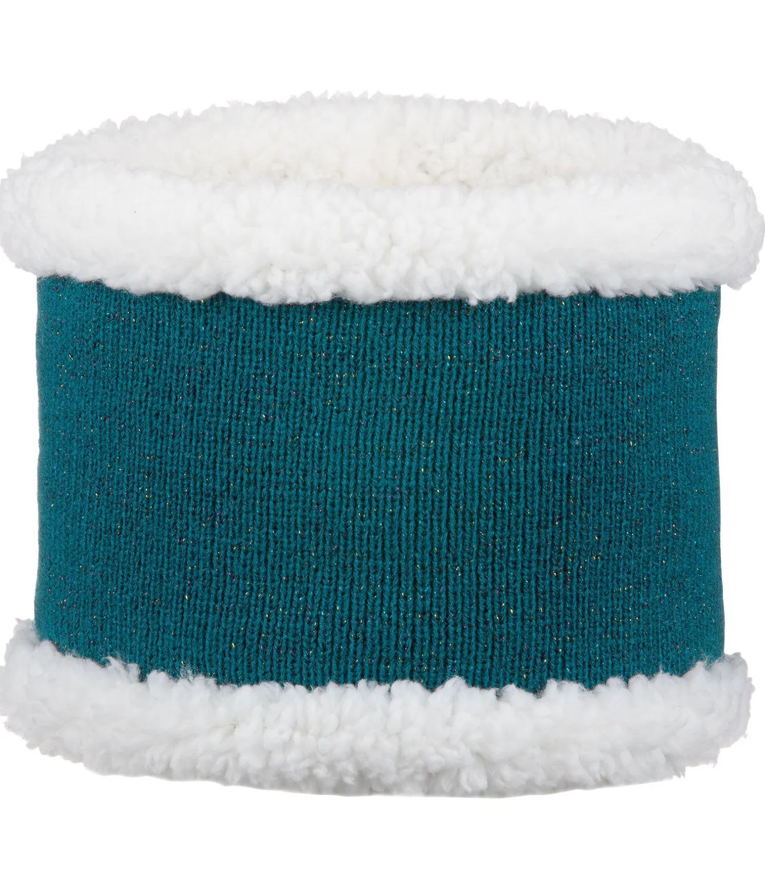 Large tour de cou avec fil scintillant. Doublure en fourrure Teddy douce. 70% polyacrylique, 30 % polyester.