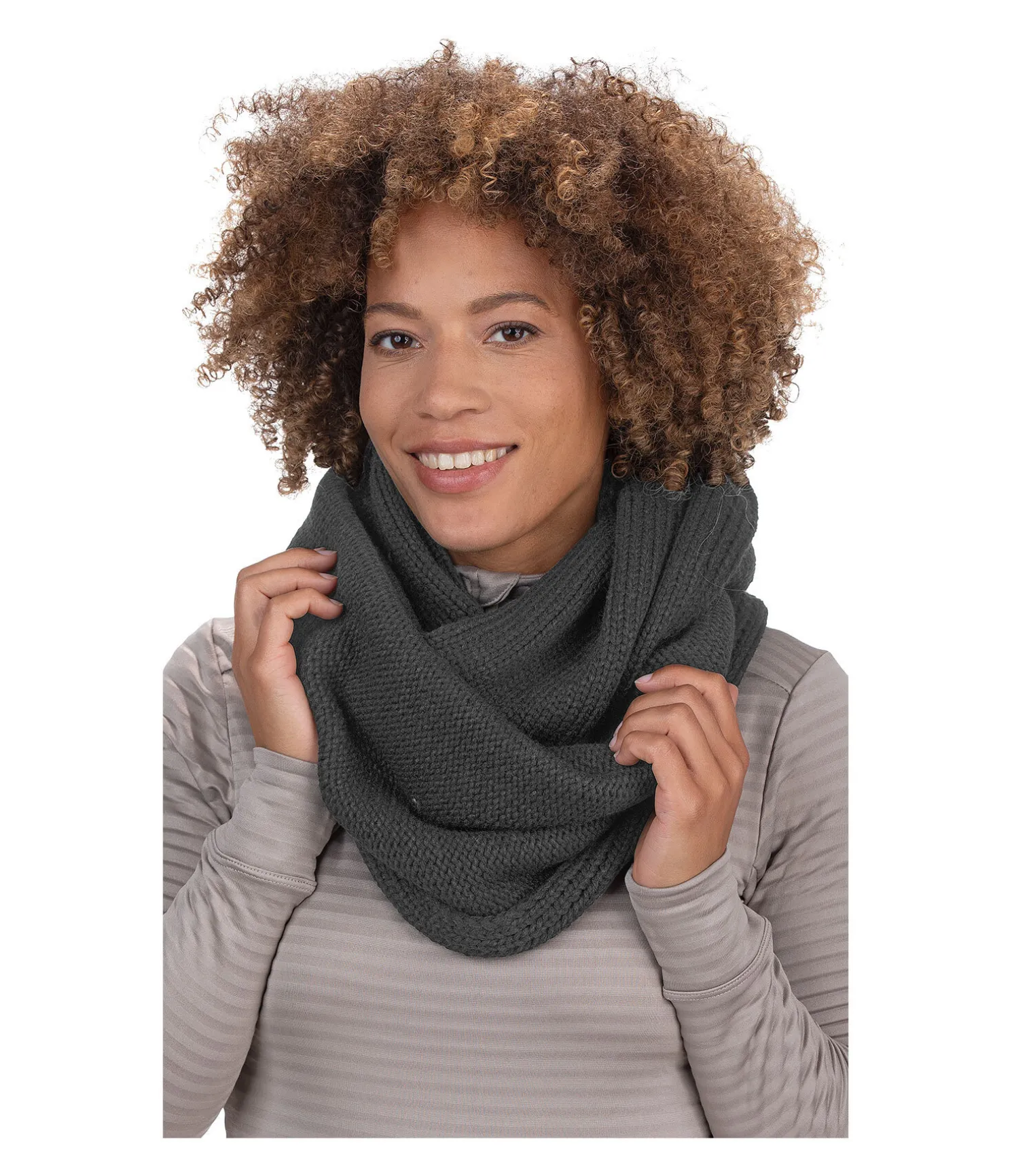 Tour de cou douillet en tricot à grosses mailles pour femme avec discret badge STEEDS sur le bord. 100 % polyamide.