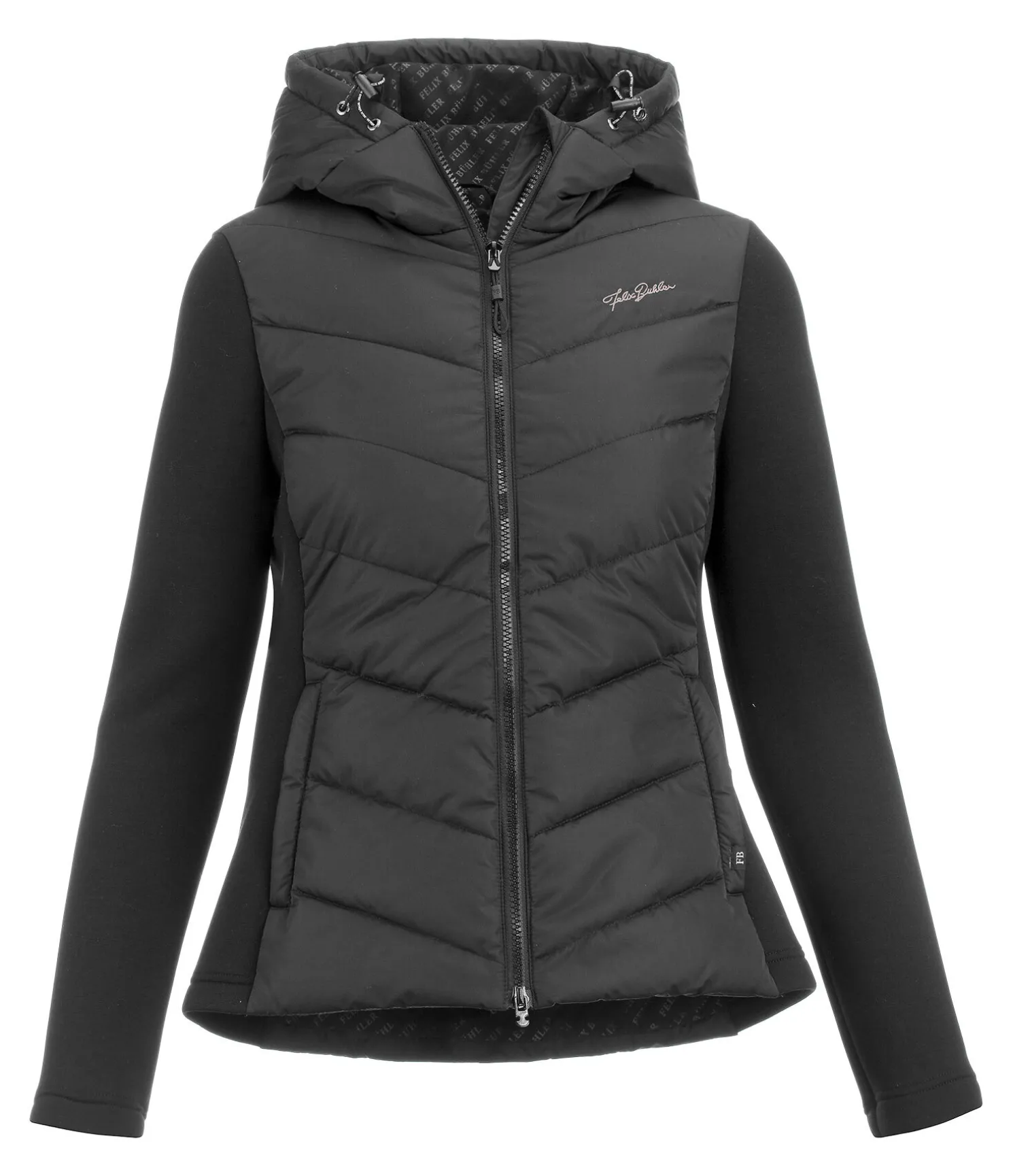 Veste bi-matière tendance assurant liberté de mouvement optimale et grand confort grâce à sa combinaison de matières. Devant, dos et capuche en matière rembourrée chaude. Manches et inserts latéraux en matière stretch douce. Capuche réglable pouvant être fixée dans le dos. Fermeture à glissière double sens avec sous-patte et protège-menton, 2 poches zippées dissimulées devant et broderie Felix Bühler. Matière rembourrée 100 % polyester ; matière stretch 65 % polyester, 30 % viscose, 5 % élasthanne.