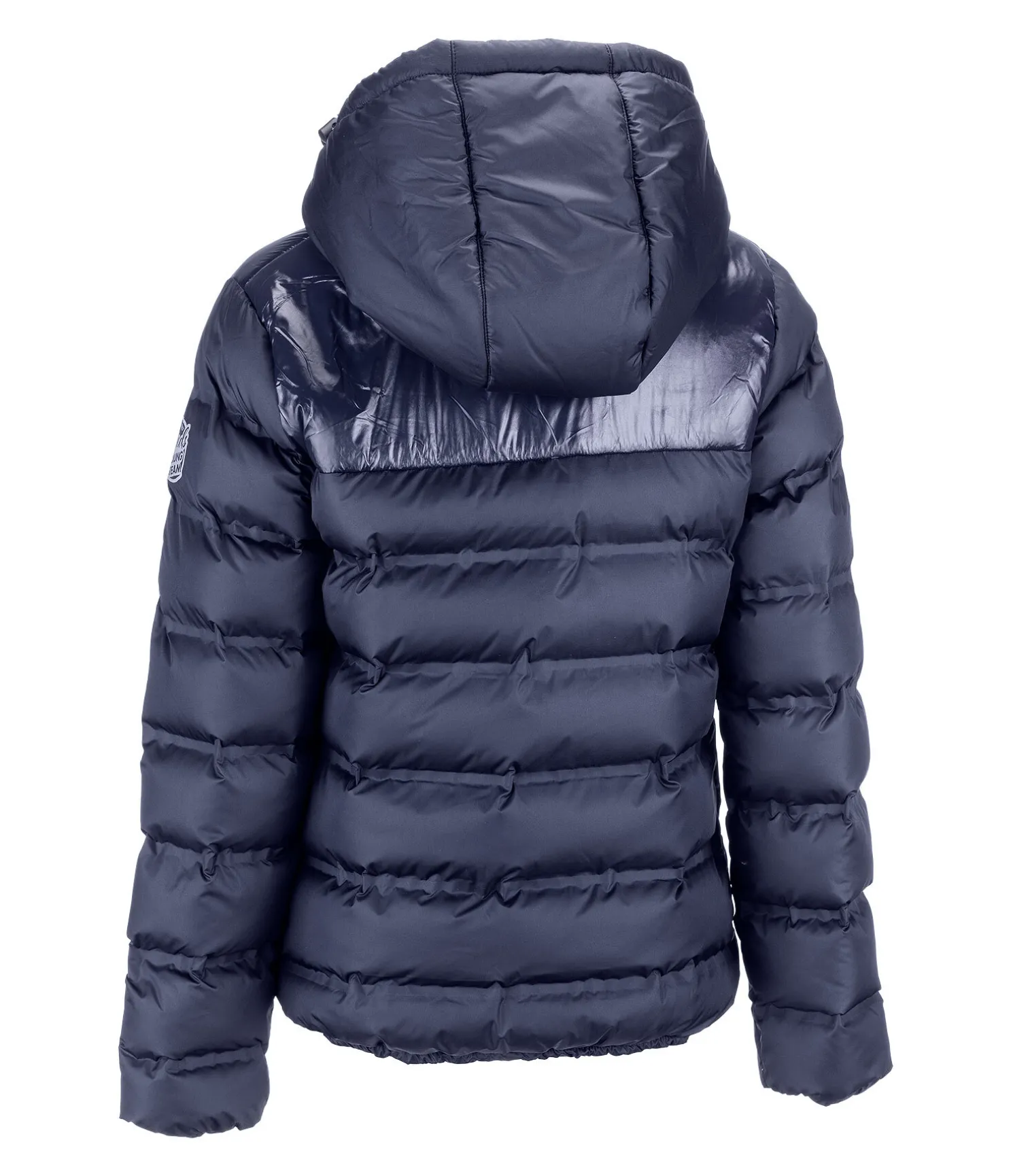 Veste matelassée sportswear avec col montant. Capuche réglable avec système de fixation dans le dos par bouton-pression. Fermeture à glissière double sens de couleur contrastante avec protège-menton. 2 poches avant avec boutons-pression. Bas des manches et ourlet élastiqués. Imprimé STEEDS réfléchissant sur le bras. Surpiqûres thermosoudées. La partie supérieure de la veste est satinée, la partie inférieure est mate. 100 % polyester.