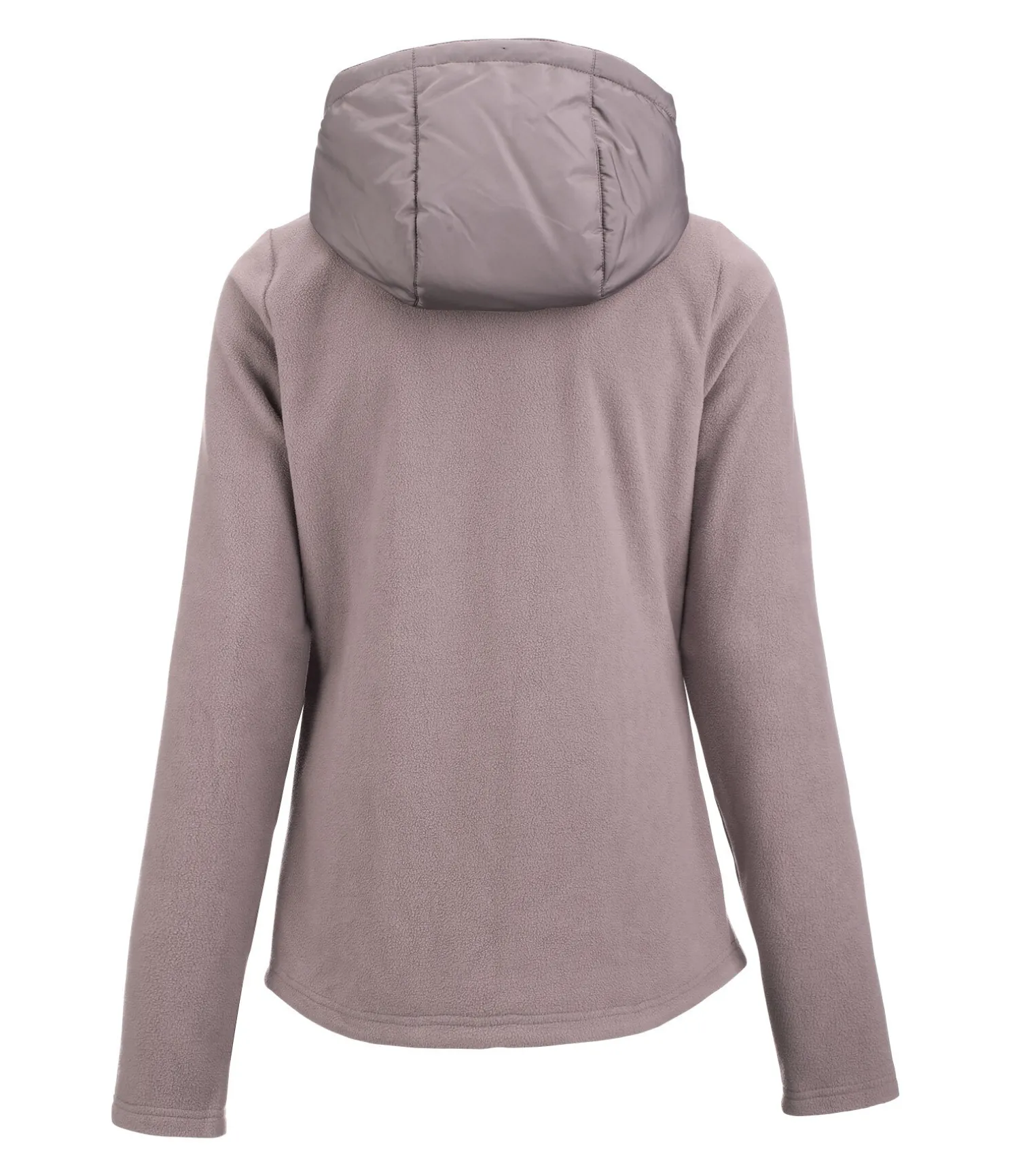 Veste bi-matière douce et molletonnée. Polaire sur les manches, au dos et sur les côtés, combinée à une matière en microfibre légèrement matelassée à l’avant. Capuche ajustable dotée d’un système de fixation dans le dos par bouton-pression. Coupe légèrement plus longue à l’arrière. Fermeture à glissière double sens avec protège-menton. Deux poches latérales zippées dissimulées. Manches raglan. Logo STEEDS brodé sur la manche. 100 % polyester.