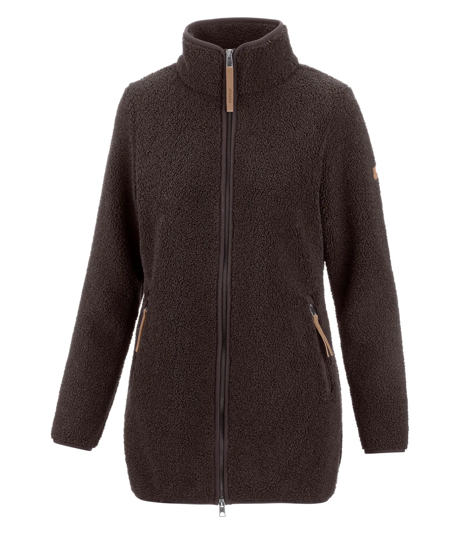 Veste longue en polaire Teddy extra-douce. Avec col montant et coupe ajustée. Fermeture à glissière double sens avec sous-patte, 2 poches zippées devant, bas des manches, col et taille élastiqués. Badge STEEDS sur la manche. 100 % polyester.