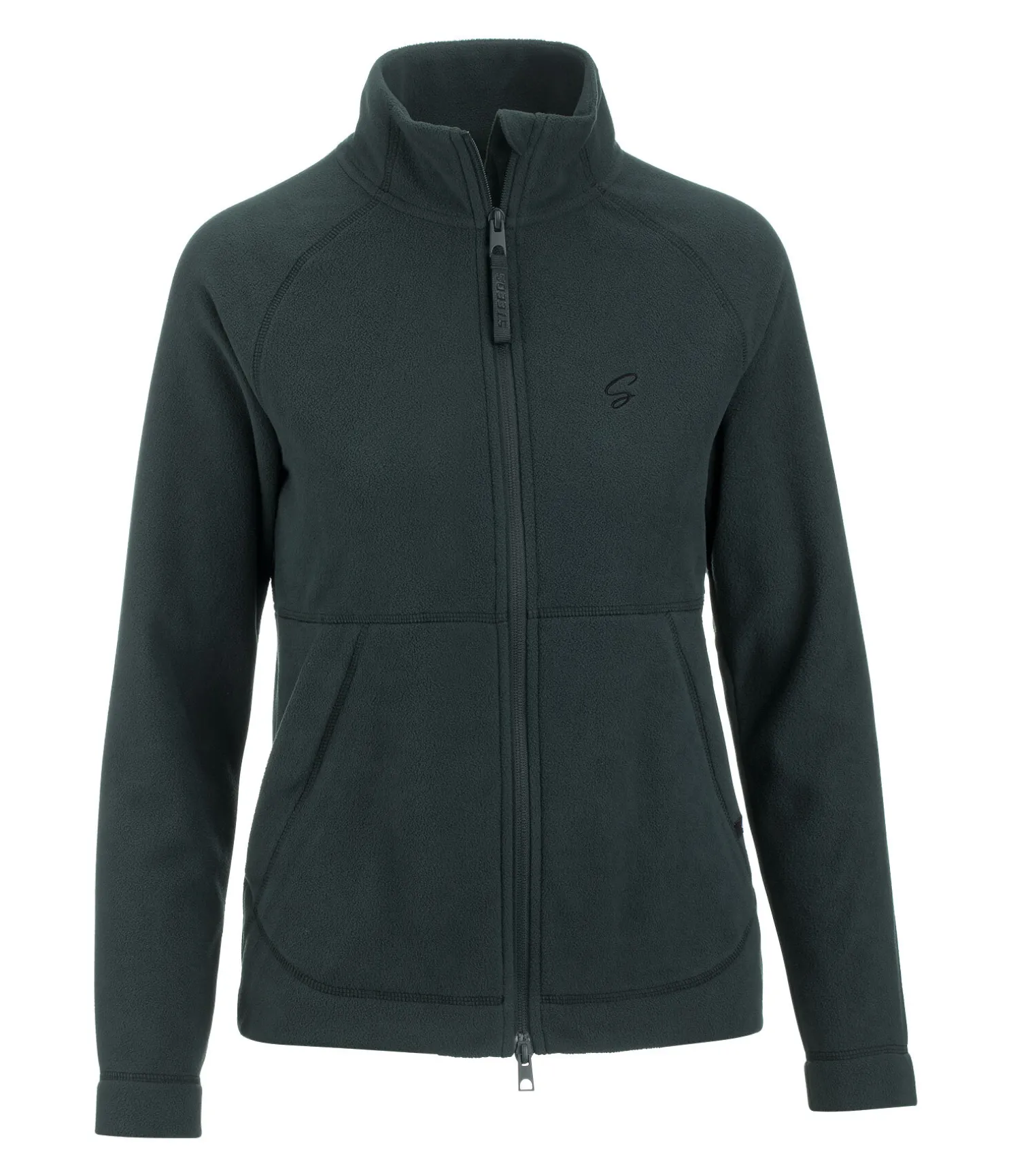 Veste polaire douce et chaude avec col montant. Fermeture à glissière double sens avec sous-patte et protège-menton. Deux poches latérales zippées. Broderie logo discrète sur la poitrine. Traitement anti-bouloches. 100 % polyester.