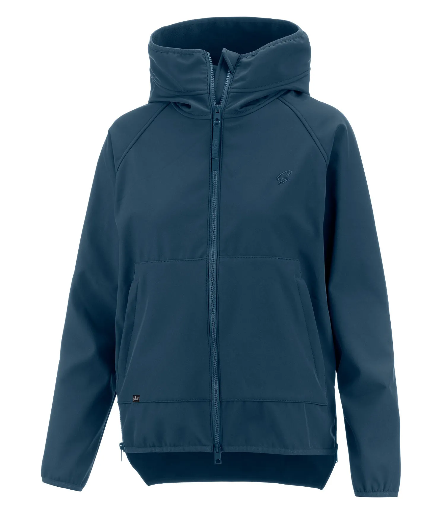 Veste softshell sportive à capuche dans un look oversized coupée plus long dans le dos. Déperlante, coupe-vent et respirante. Poches raglan avec fermeture à glissière devant, capuche haute, bas des manches élastiqués et taille réglable. Fentes cavalières zippées latérales. Broderie STEEDS sur la poitrine. 94 % polyester, 6 % élasthanne.
