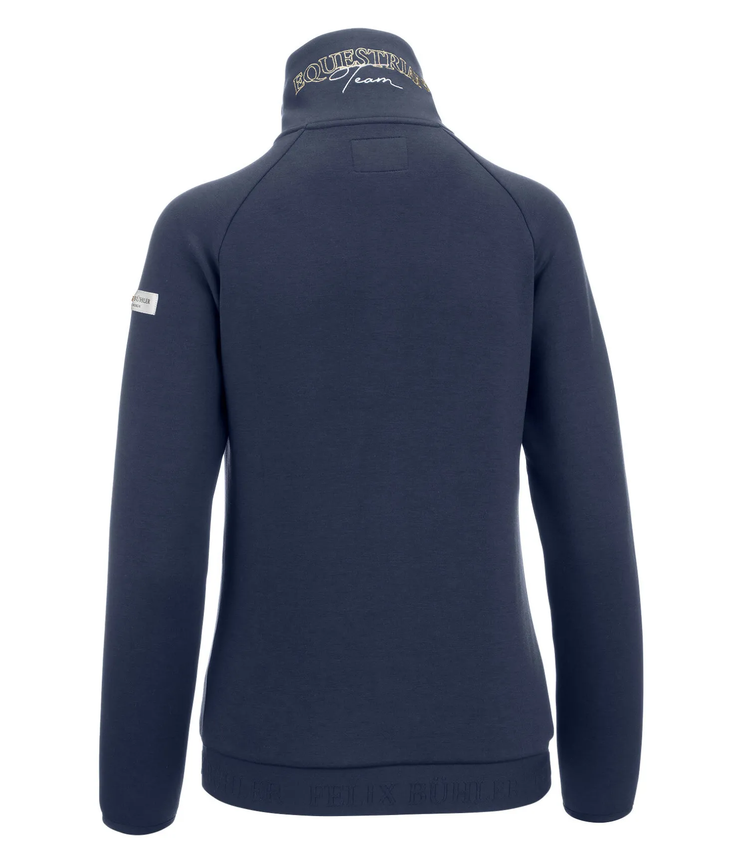 Veste douce en stretch Performance. Tissu technique de qualité supérieure, respirant et à séchage rapide. Col montant ajustable par cordon de serrage. Fermeture à glissière double sens avec sous-patte et protège-menton. Deux poches latérales zippées. Poignets élastiqués. Large élastique souple à la taille avec signature Felix Bühler. 83 % polyester, 12 % viscose, 5 % élasthanne.