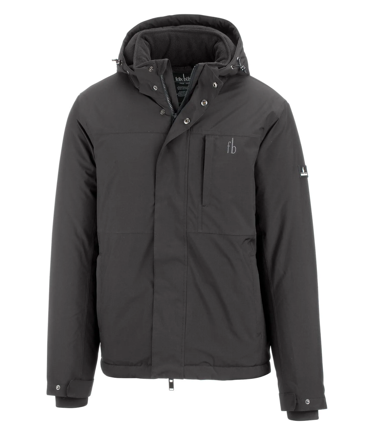 Veste à capuche d’hiver technique. Col montant. Capuche amovible zippée, ajustable et doublée en polaire. Bouton-pression pour fixer la capuche dans le dos. Matière imperméable (8.000 mm), coupe-vent et respirante. Garnissage chaud. Fermeture à glissière double sens dissimulée avec protège-menton. 2 poches latérales et 1 poche sur la poitrine zippées et dissimulées. Badge Felix Bühler sur la manche. Bas des manches avec finition bord-côtes coupe vent. Taille et bas des manches ajustables. Doublure intérieure avec motif all-over Felix Bühler. 100 % Polyester.